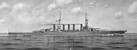 В этом проекте все 16 оставшихся котлов уместились под броне палубой в отдельных отсеках по бокам от турбинных отделений, что позволило обойтись всего двумя широкими трубами.