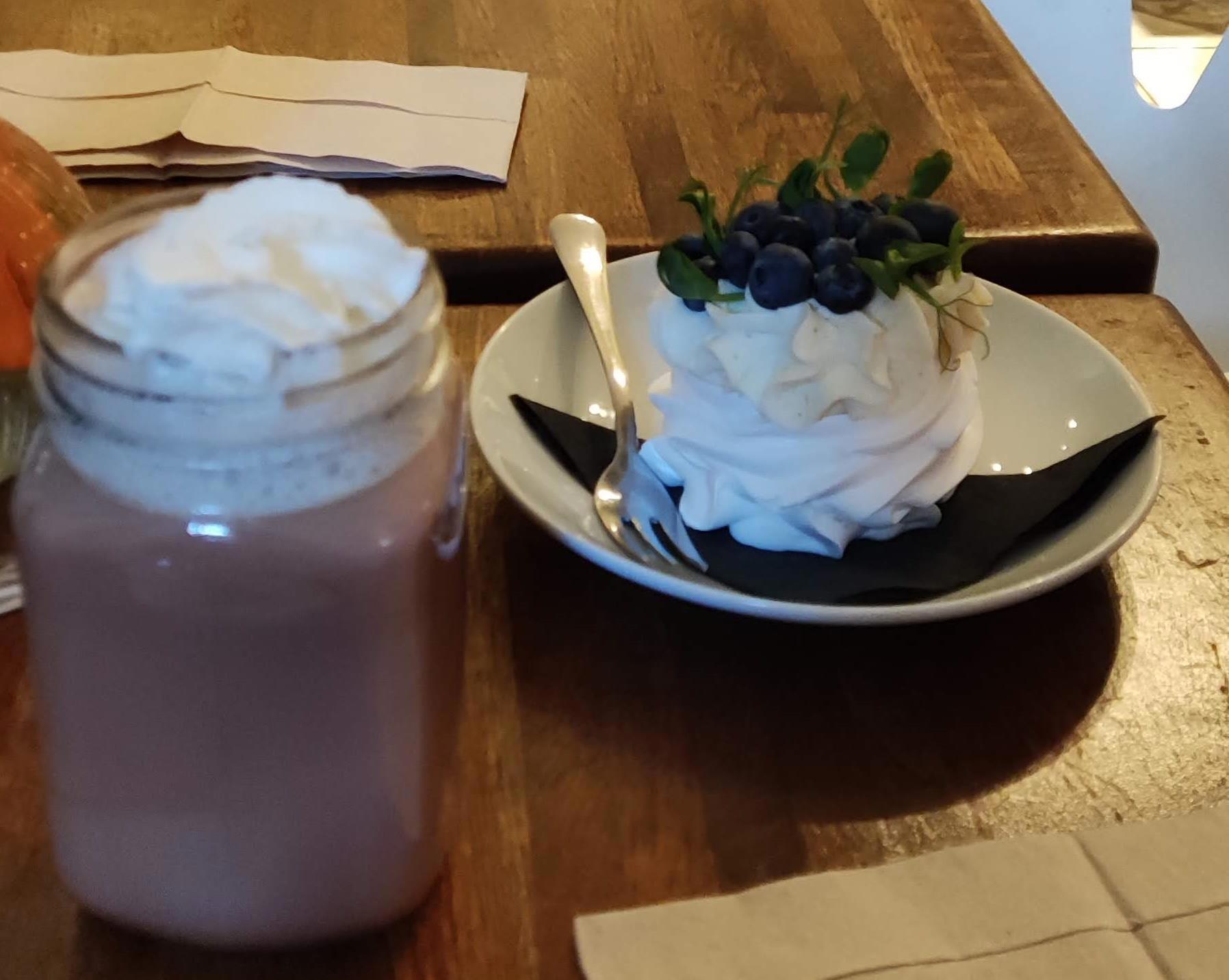 А потом, естественно, кафе. Каждый взял, что хотел. Это, например какао со сливками и пирожное Павлова.