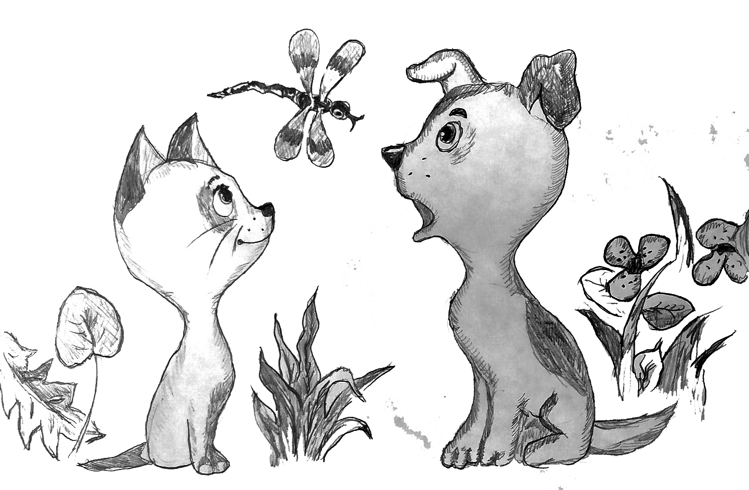 Для начала взял вчерашних котёнка Гава и щенка Шарика