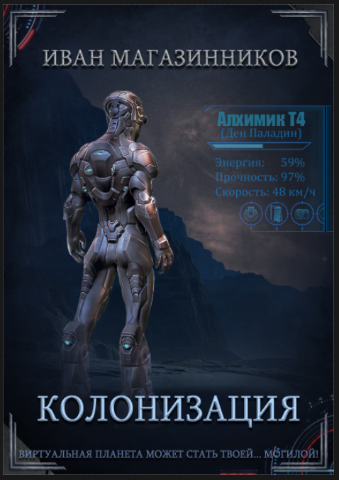 Помимо всего прочего, хотят они "лицензионные" обложки, которые ну прям авторские или легально-бесплатные настолько, чтобы никаких проблем с авторскими правами. Первой пробой я решил сделать свою "Колонизацию", самостоятельное законченное произведение в жанре космофантастической ЛитРПГ про освоение планет при помощи "мехов".