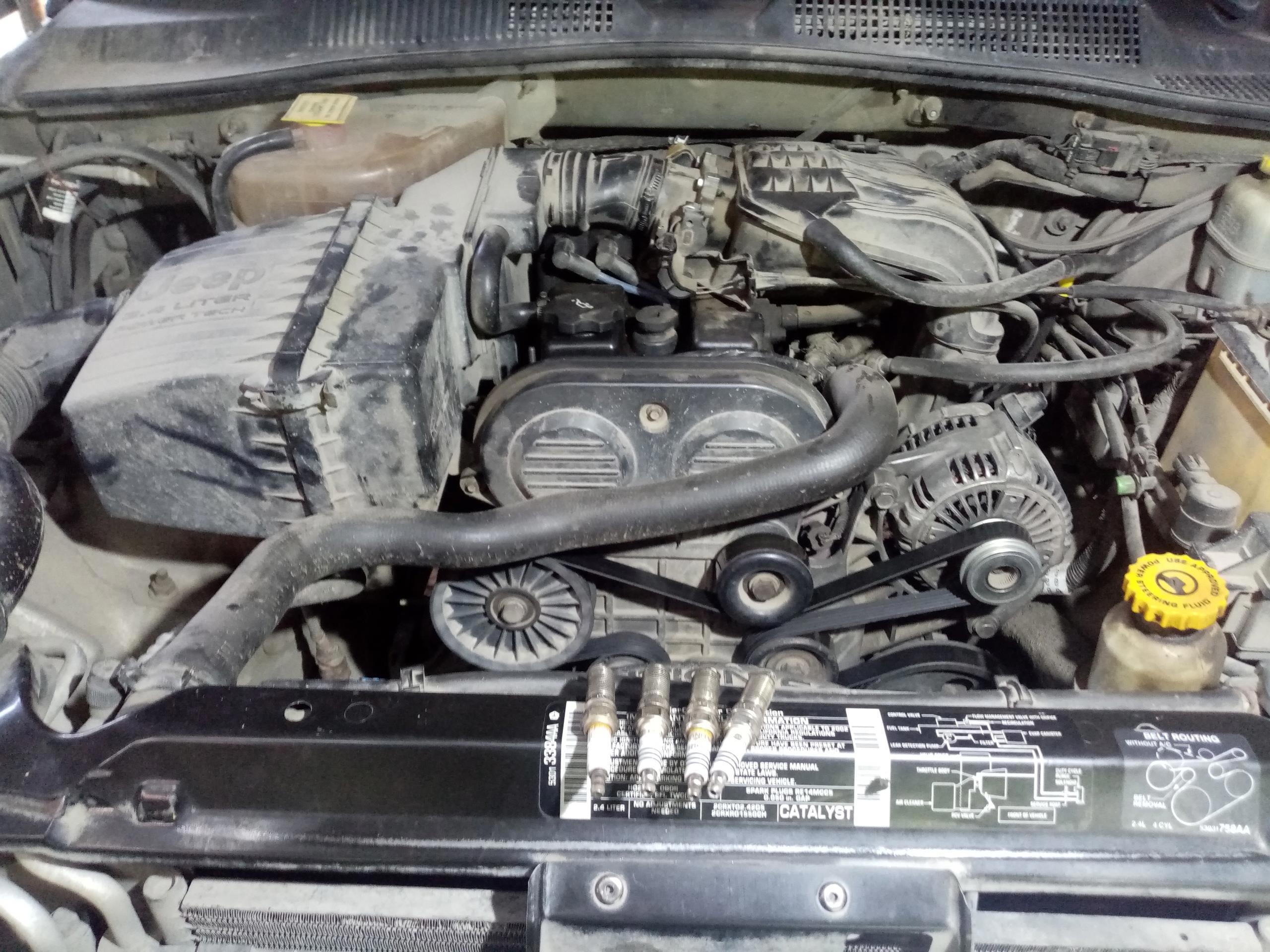 Джип Либерти Спорт 2.4. Хз где тут спорт... Такой мотор в Волги и Газели ставят. В прошлый раз это ведро приезжало с оборванным ремнем ГРМ, в этот раз - с заменой свечей. По прошлому опыту я никаких иллюзий не питал, и ждал самого страшного. Т.к владелец ездит до смерти запчасти.