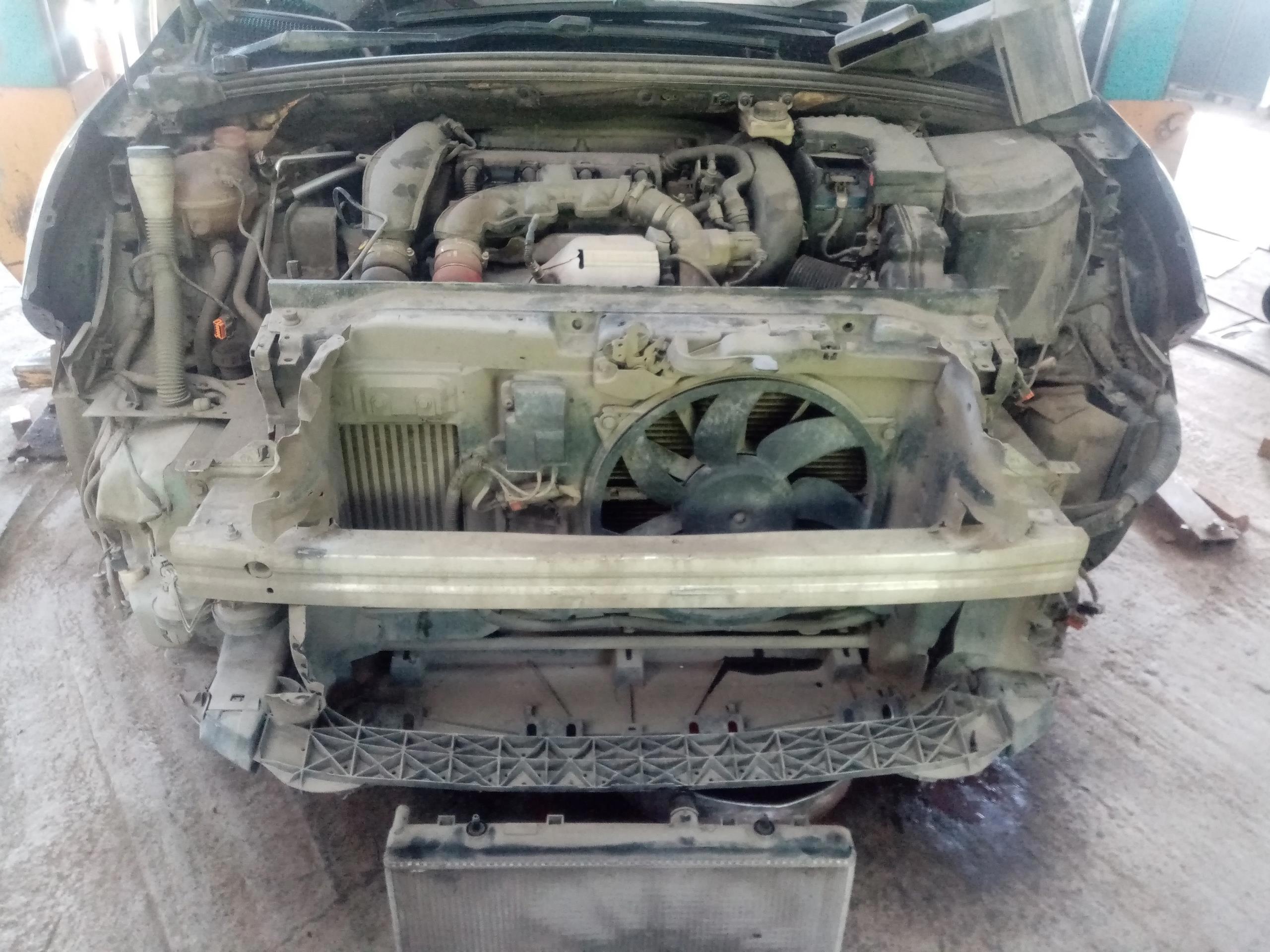 Начнем с немного старого. Этот Ситроен С4 приезжал недели три назад, типичная ситуация для лета - перегрев. Пыль, пух, насекомые и мелкие домашние животные отлично забивают и без того не очень хорошо обдуваемый радиатор, и машина начинает греться. Для извлечения радиатора двигателя пришлось разобрать пол-морды, благо сделать это не очень сложно.