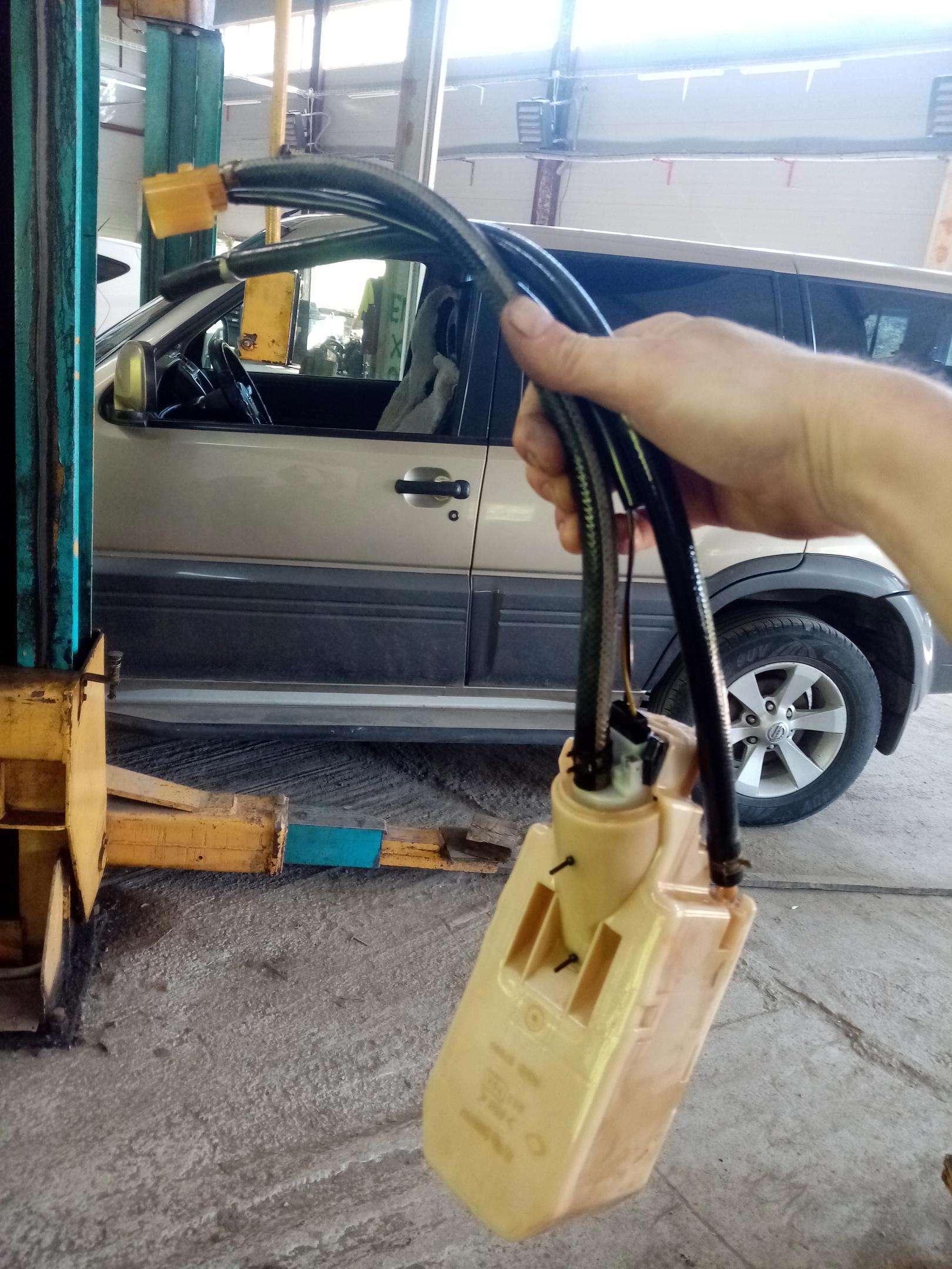 Ниссан Террано. Приехал на замену бензонасоса. Казалось бы, открываешь бак, вытаскиваешь ферму, меняешь, и собираешь всё обратно. Но нет! Это Ниссан, у Ниссана всё через зад. Открыв бак можно достать только датчик уровня топлива. А сама ферма находится в глубине бака, чтобы её извлечь, надо засунуть руку в бак, нашарить защёлку, отжать её, и вынуть ферму вдоль оси машины в сторону заднего бампера.