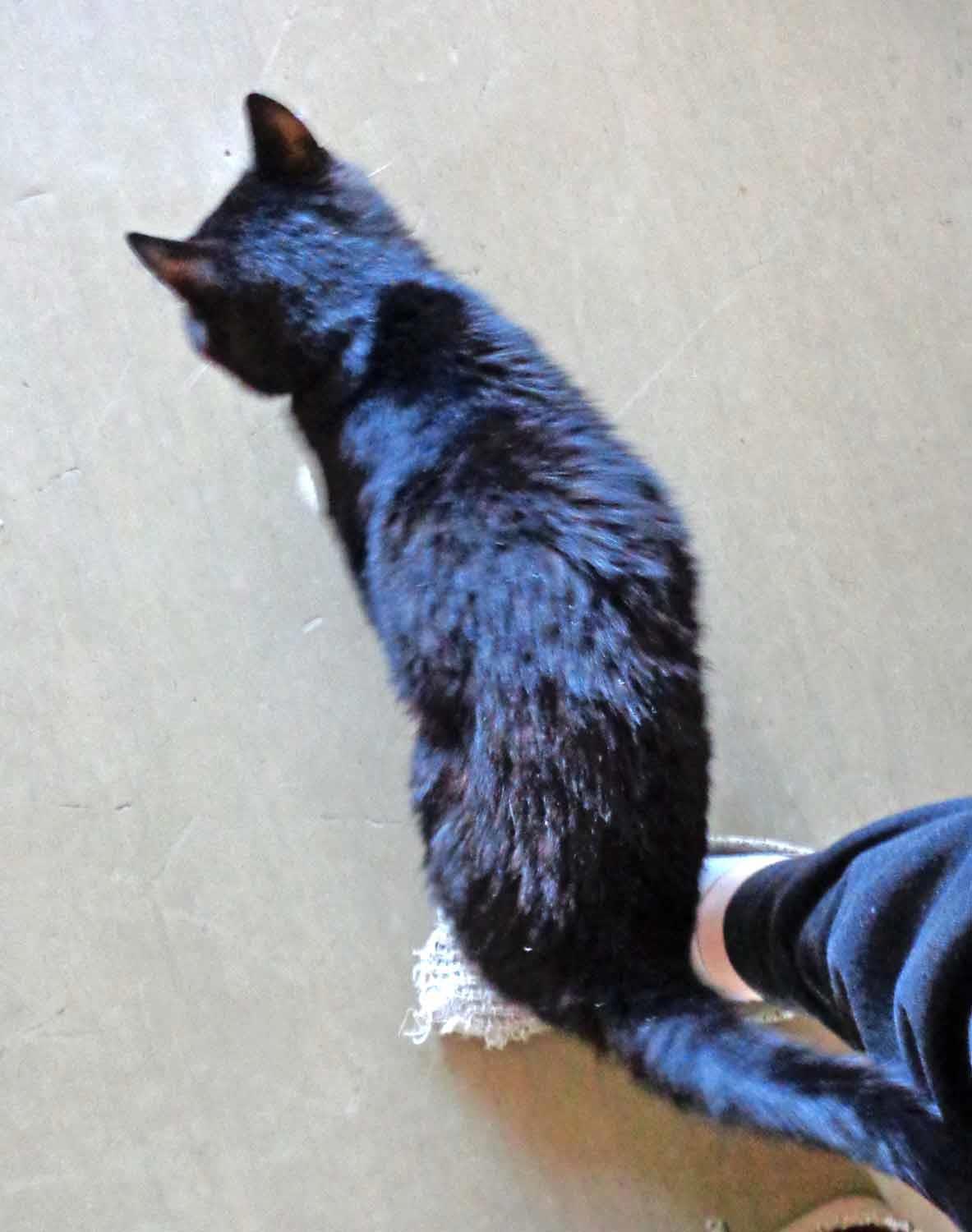 Соответственно Кот выглядит ужасно худым, бока запали, сами видите на фото. Но это - хорошо, это значит, что не всё потеряно, раз всё, что скопилось в животе, рассосалось и почки работают как надо. А худого откормим. До этого пища у него усваивалась плохо, теперь он ест всё, что даём. Стал проявляться голод, что тоже хороший признак.