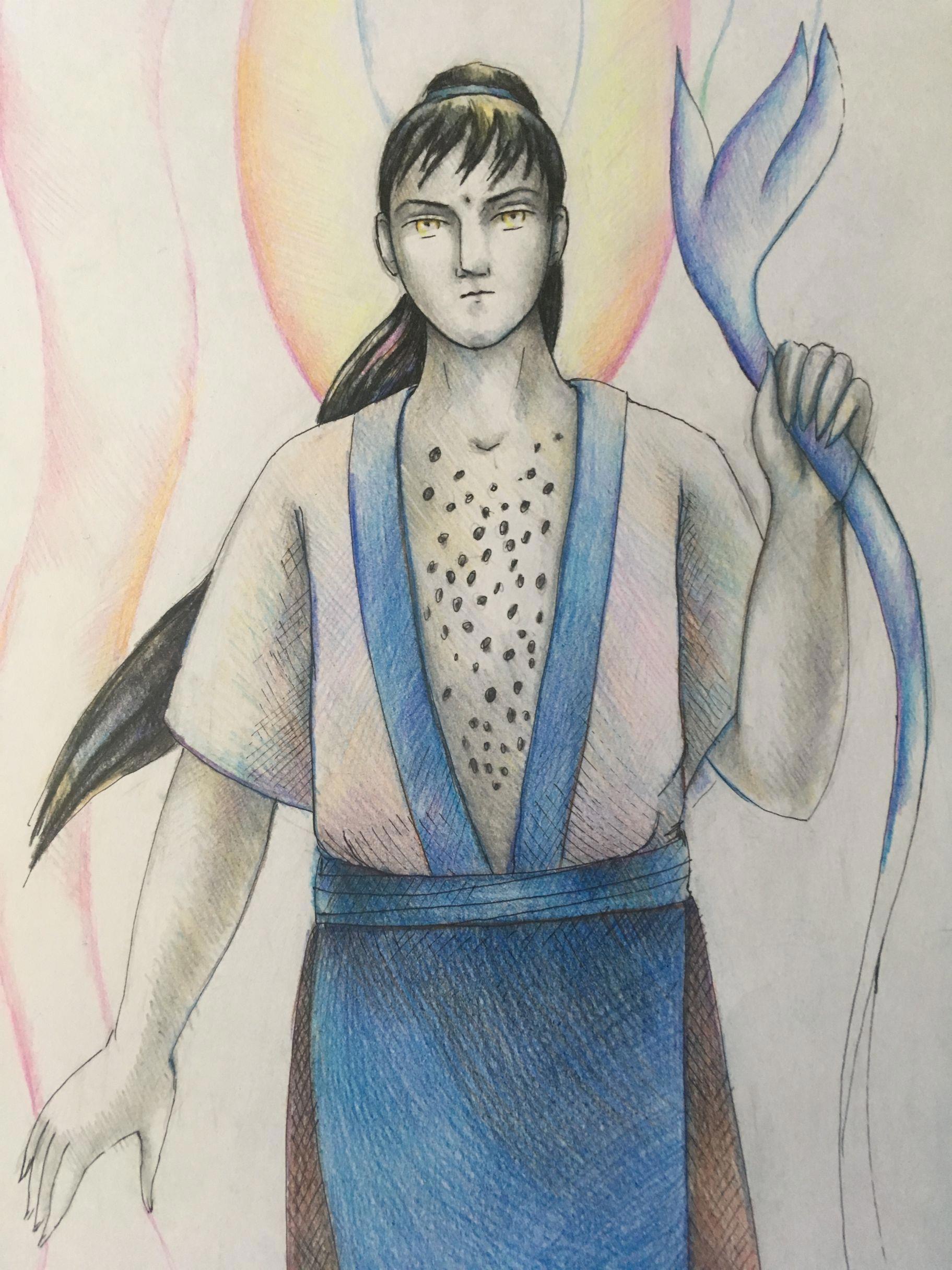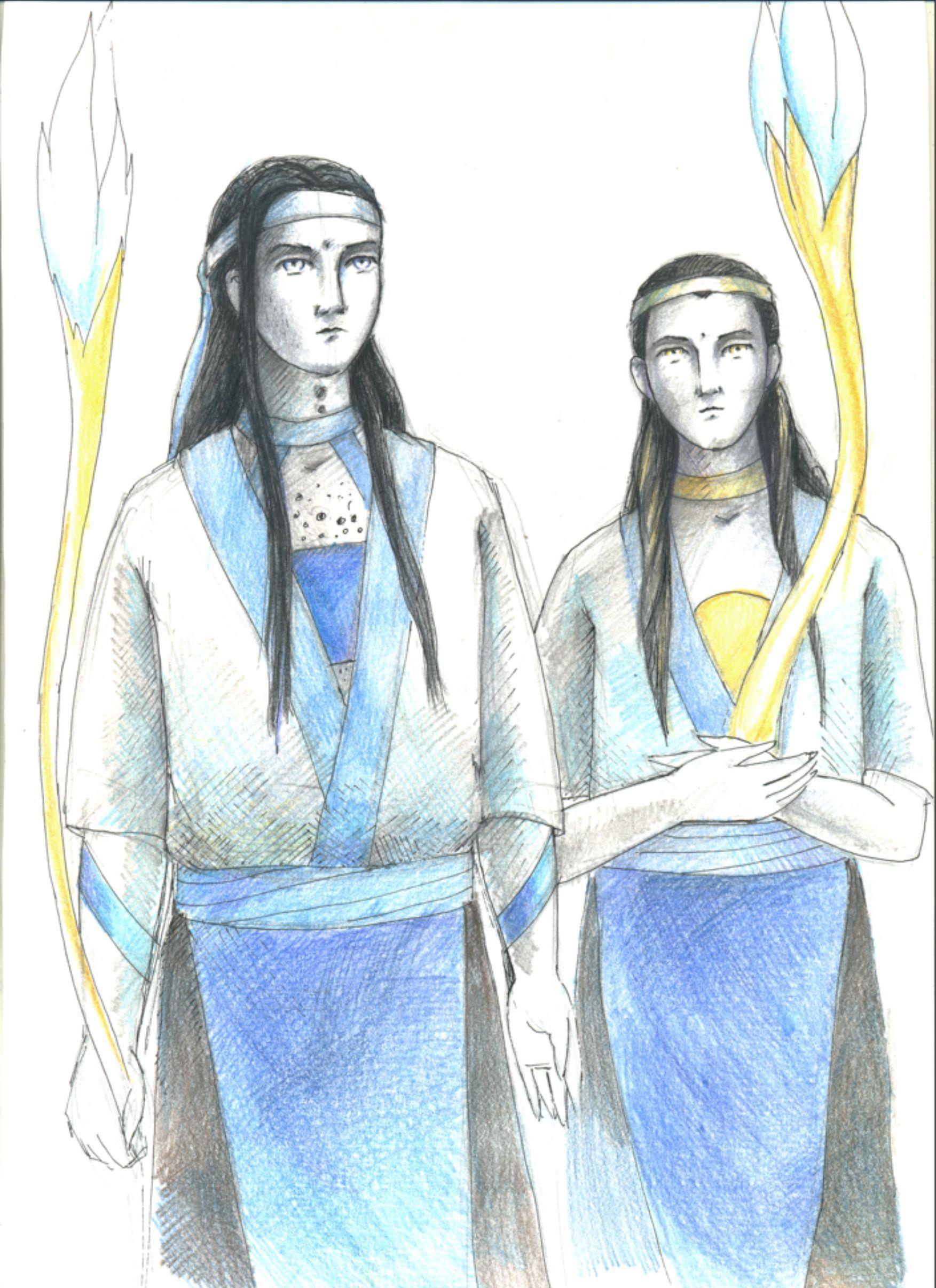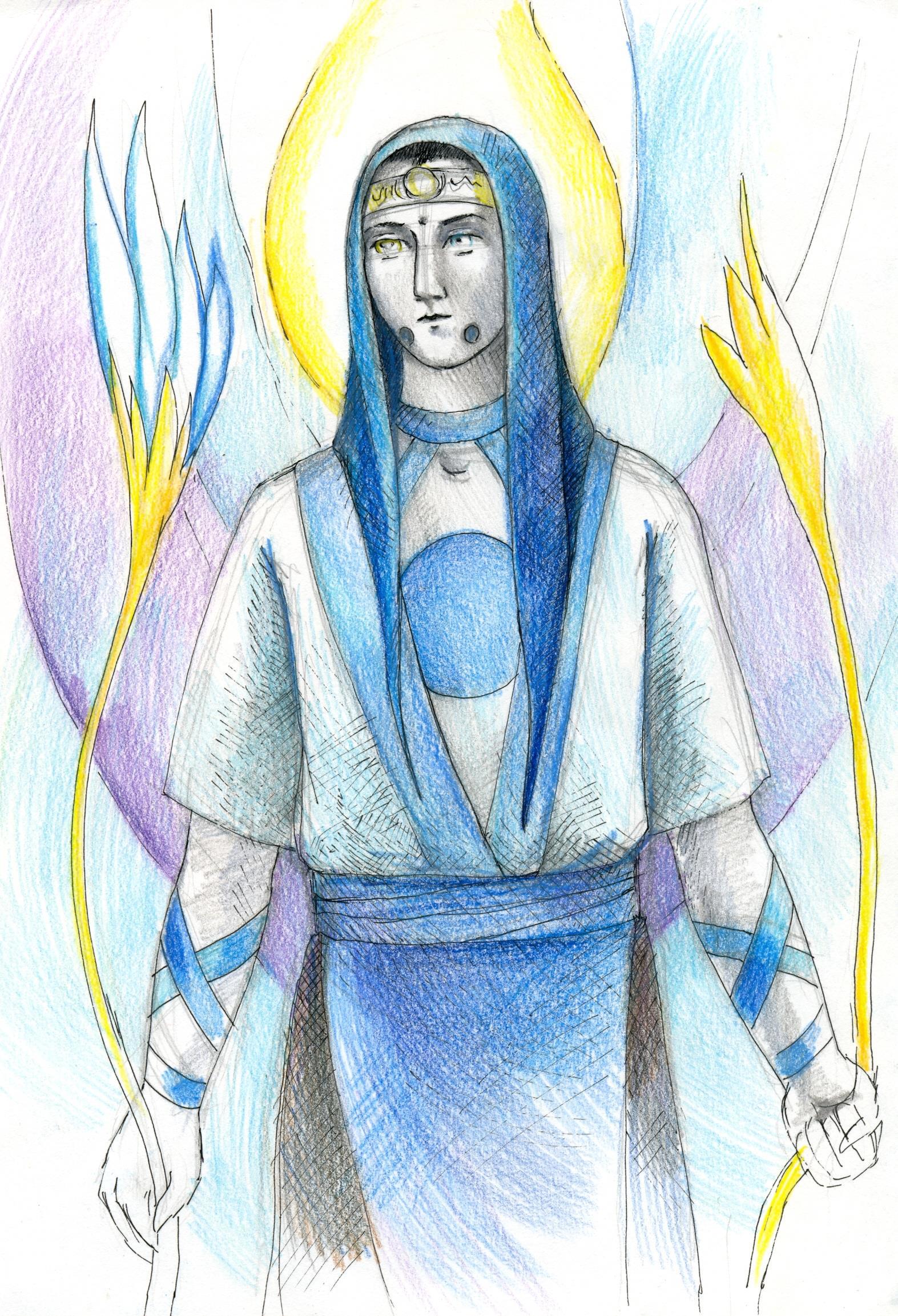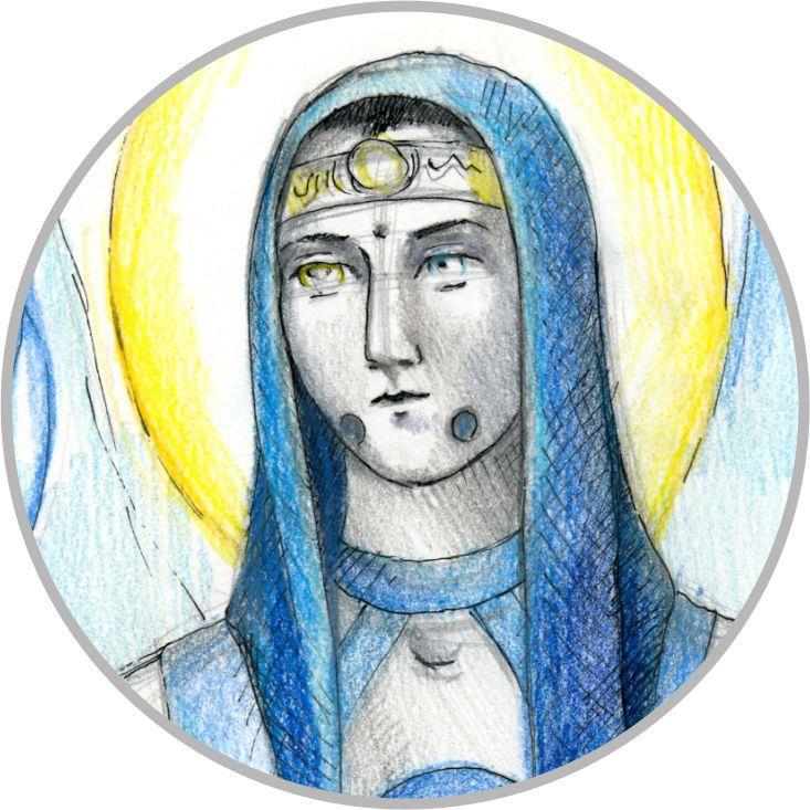 Бамму: Своими одеждами мы обязаны Второй Гейст - Асу-Амин. До этого белые творицы носили одежды, похожие на одежды древних дэви, хотя и предпочитали белый и синий цвета, которые считаются у нас цветами Праматери Гаэ. Асу-Амин же провела реформы. Во-первых, она заявила, что мы вольны носить передник. Знаете ли, для мастеров передник - это один из символов мастерства и искусства. Так почему мы, как обладающие искусством искусств, не должны его носить? Кроме передника, Асу-Амин ввела белые рубашки и штаны. Она говорила, что таким образом приближает нас к остальным асайям, ведь по замыслу Праматери искусство искусств должно было стать освобождённым и более доступным. Многие тогда не оценили реформ Асу-Амин и не хотели расставаться с одеждами дэви. Но будущее взяло своё и теперь все белые матери так облачаются и довольны. Кстати наш статус вы легко можете отличить по цвету. Передники и одежды белых сестёр - обычно белые. Матери носят голубые цвета, матроны - глубокий синий как и матриархи. Вот такой лёгкий символизм. Ну а старицы вроде Альбры облачаются в тёмно-синие старицкие покровы.