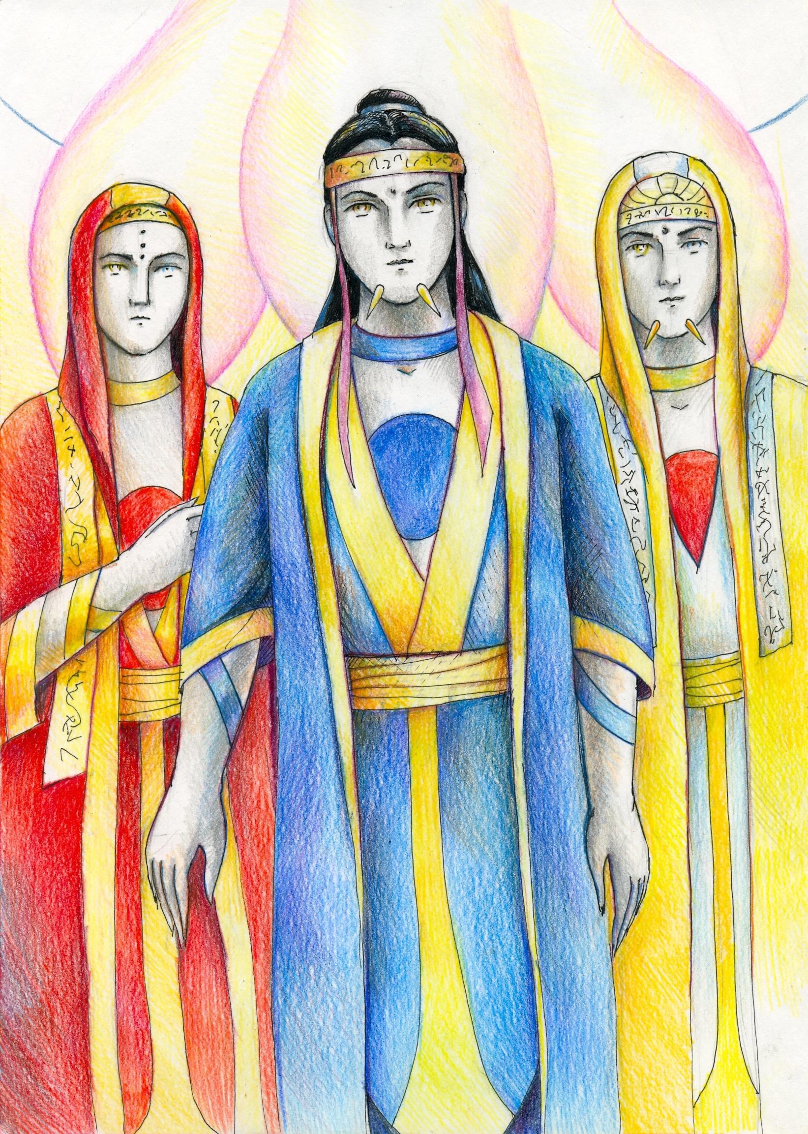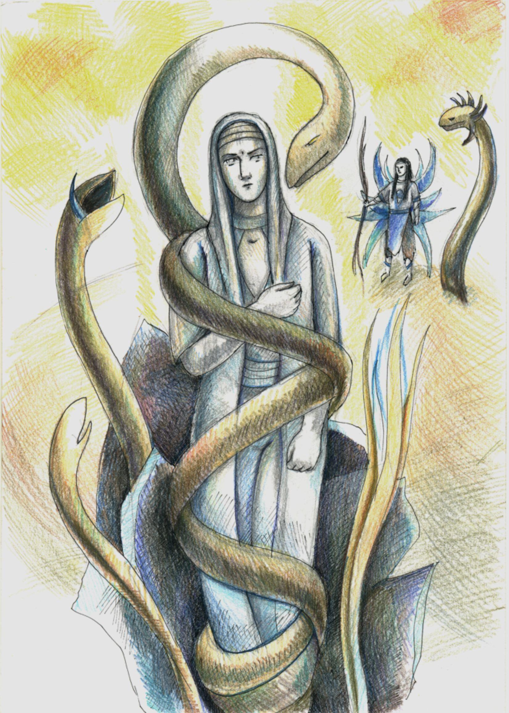 Шамсэ: Ну а я завершу. Я ныне нэна. Но прежде путь белой матери был моим путем. Великая печаль заставила меня свернуть с него. Великий Гэрер прошлого - Маттэ Маиши был мне сыном, ну а Линанна и Саника - дочери. И я рада, что научила их искусству искусств.