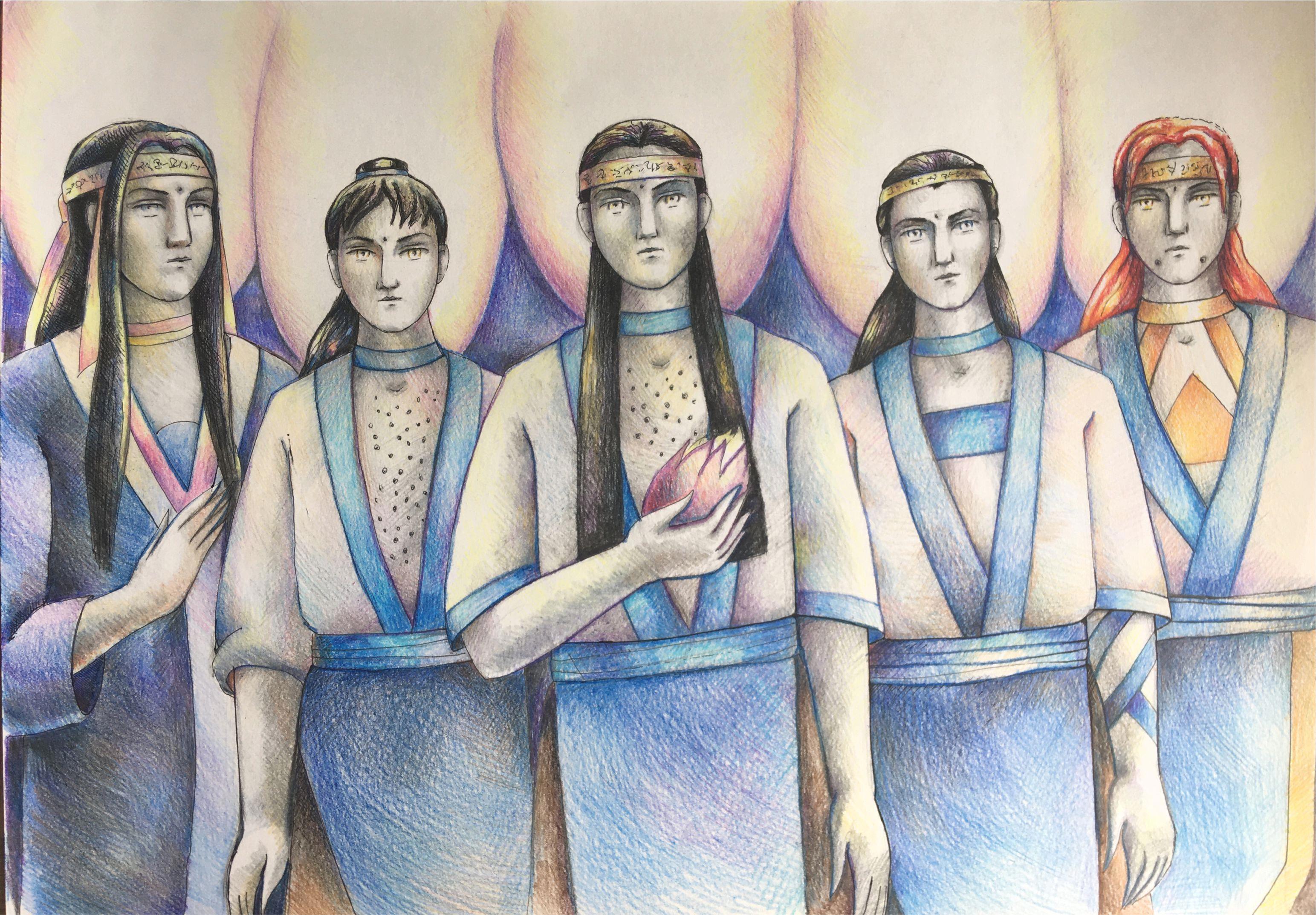 Белые матроны(слева направо): старица Альбра, матрона Бамму, матриарх Иша, матрона Линдэ, матрона Садхи Багряница