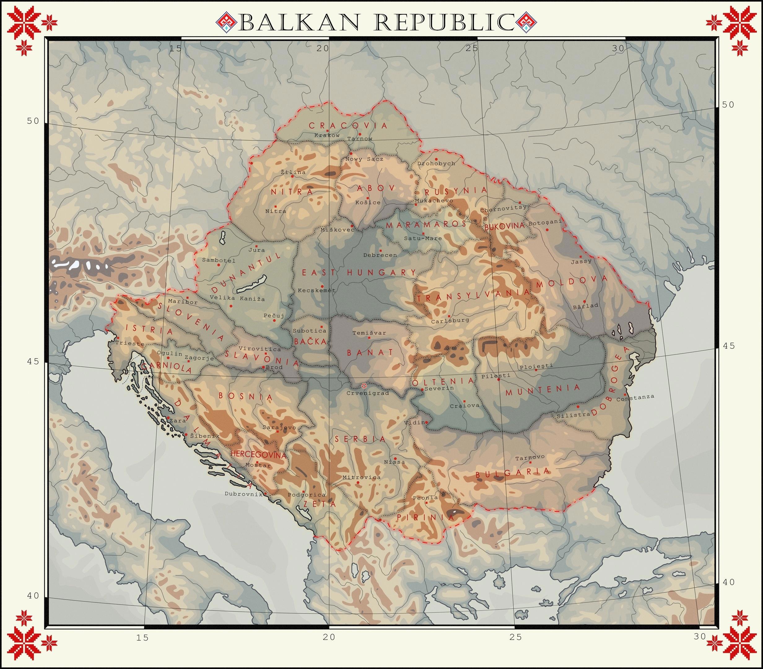 • Напомню, что Балканскую республику не следует воспринимать как "выжившую Югославию", История БР достаточно подробно описана мною в справке: развилка альтернативной реальности случилась ещё в середине XVII века, дальше история Балкан развивалась уже заметно иным путём, так что никакой Югославии в этом сеттинге просто не существовало.