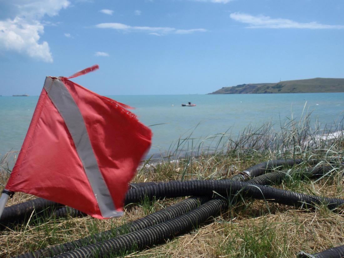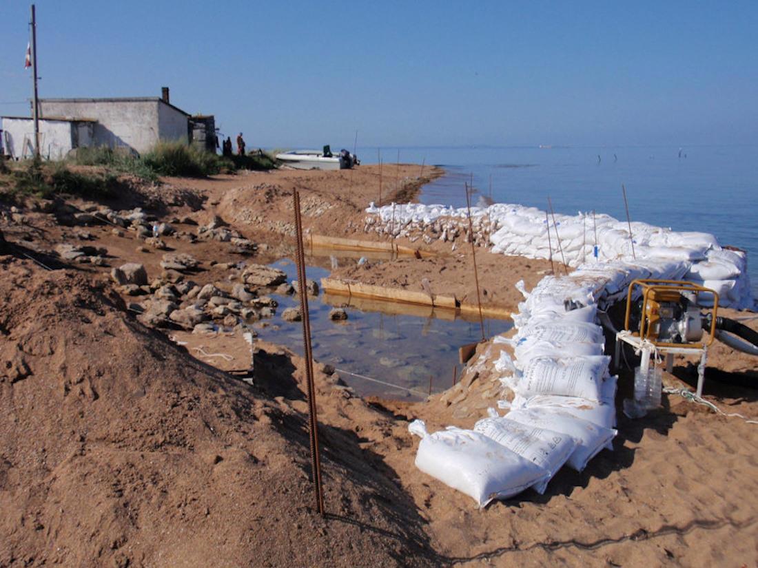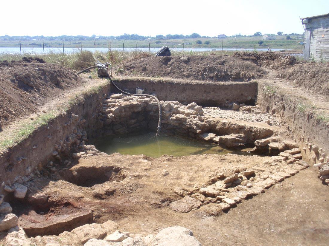 Иногда наземный раскоп таковым считается условно, поскольку из-за близости моря он наполняется водой. Воду откачивают помпами, но если море настроено игриво, то ни помпы, ни дамбы из мешков с песком не помогут )))