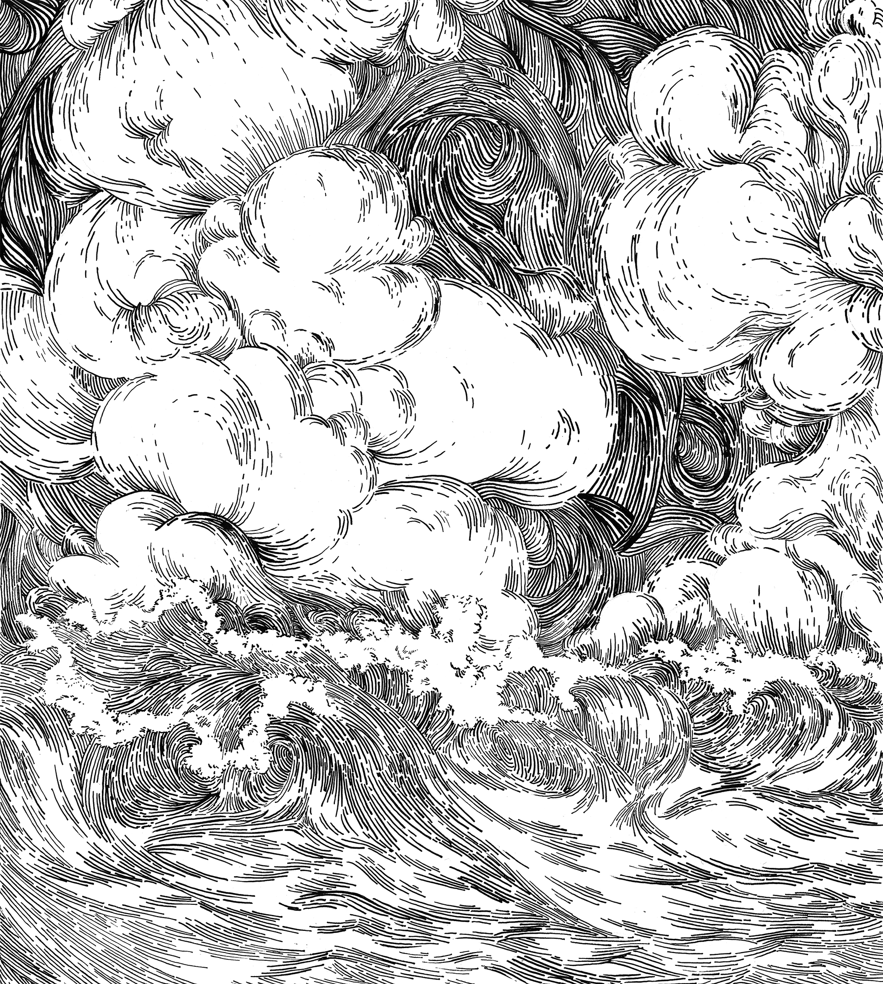 ✧ Работа с морем, каменная бумага, 188х168мм.