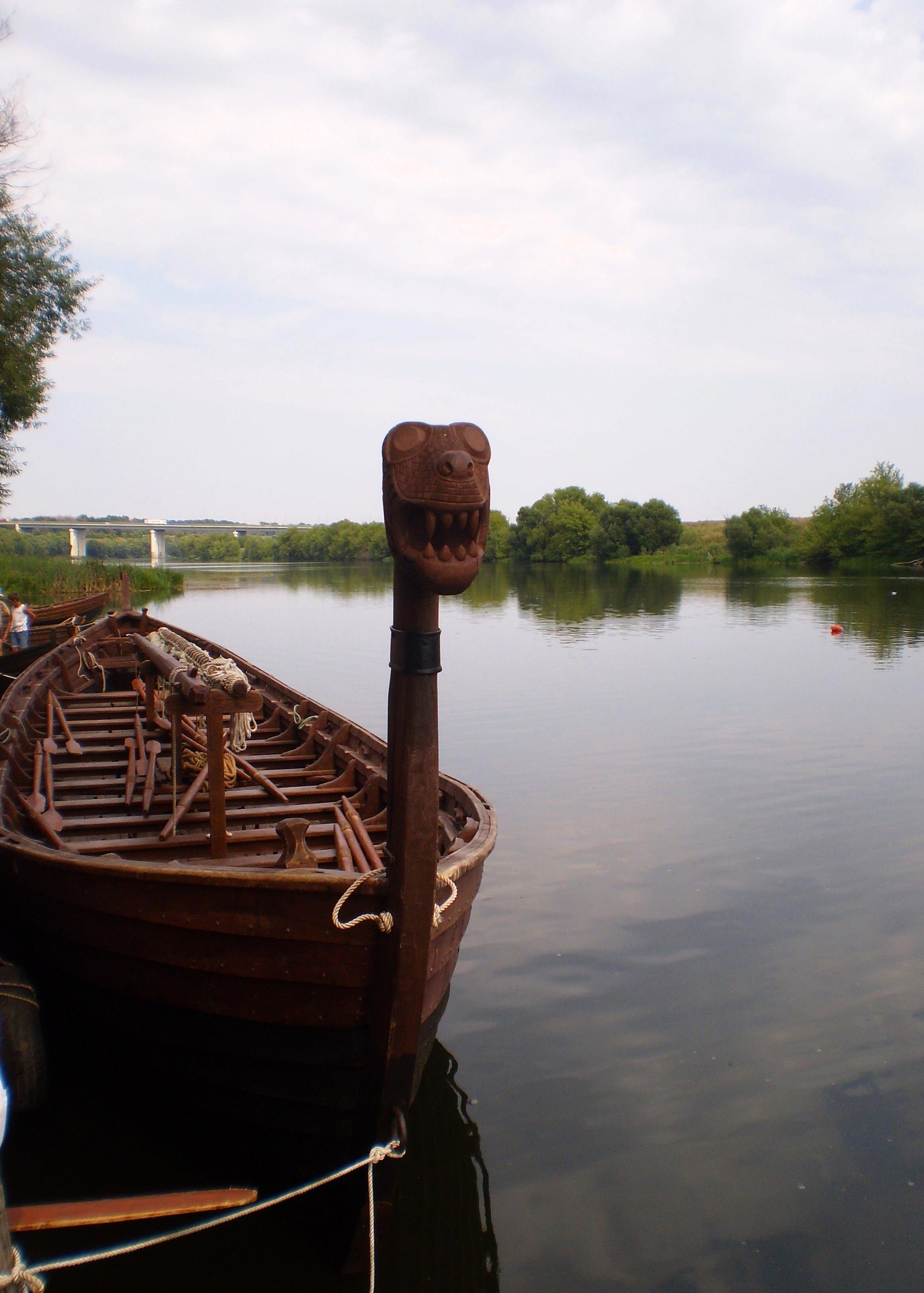 Восьмиметровый драккар, имеющий опыт хождения по Онежскому озеру.