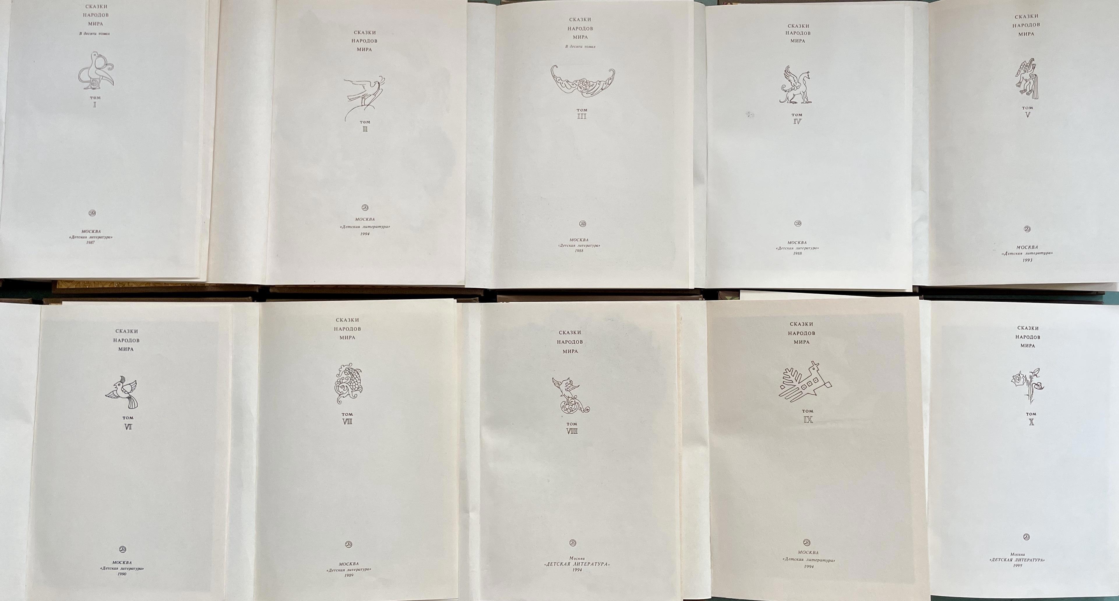 На заглавных страницах тоже есть лаконичные рисунки, они не совпадают с рисунками на задних обложках, и тоже все разные.