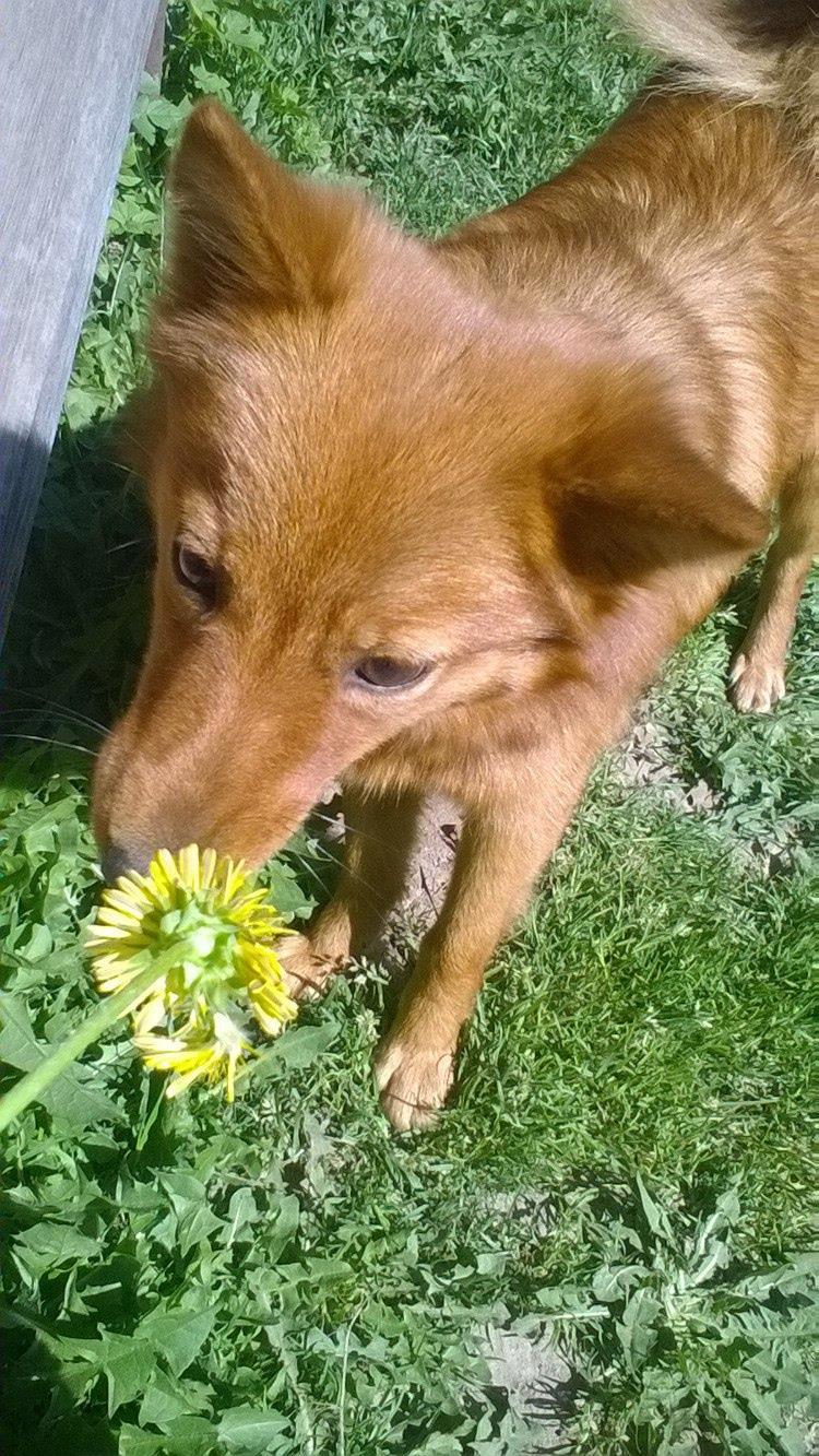 Так вот, наша собака, по ощущению, из нижних миров. Очень хорошенькая и очень кровожадная, убивающая ежей и ловящая птиц за крылья. Если ей удаётся выбежать за ограду, она начинает с рычанием грызть соседский забор — от злости, что соседа укусить не может. И очень она понимает красивое — увидит цветок, постоит, полюбуется и скусит. Водной лилии ни разу не дала расцвести, в стадии роспуска съедает. Причём явно из эстетических соображений. Натуральный демон!