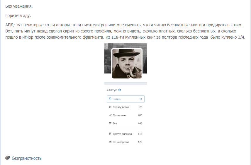 Автор: Тимур СытниковЗахожу я сегодня домой, после окончания рабочего дня, и вижу очередную истерику в блоголенте. Вот, полюбуйтесь, если есть желание: https://author.today/post/295864