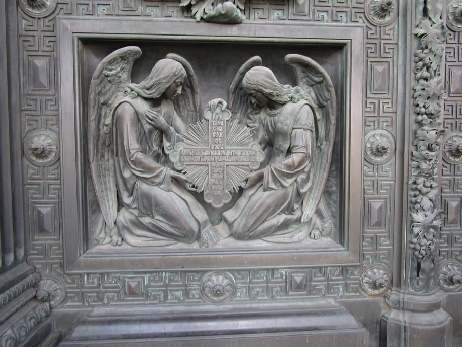 Обломавшись с Петергофом, мы подались было в Исакиевский собор, но он был уже закрыт. Сфоткала нижнюю часть дверей, очень красивый барельеф: