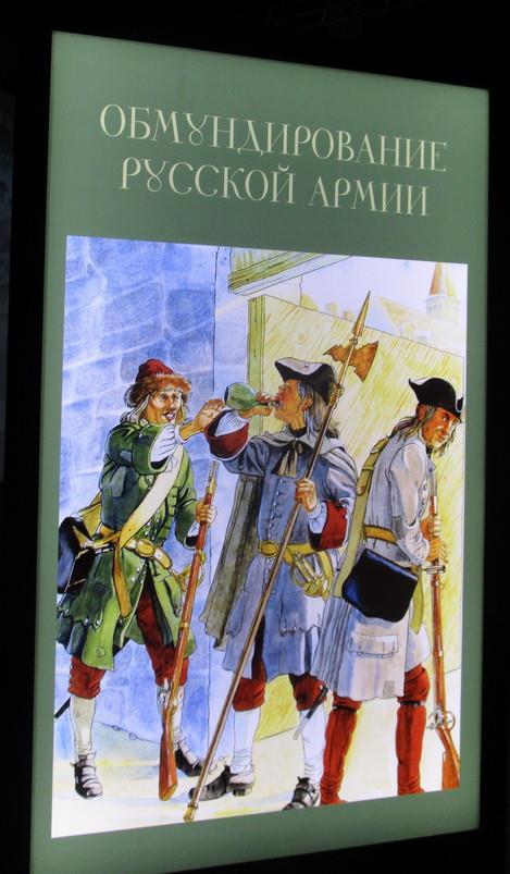 Есть экран с боем на саблях. Много экранов с битвами петровской эпохи, чаще всего это выдержки из фильмов. Есть панорамный экран с морем, мне бы такой в комнату по всем стенам... На информационных стендах можно полистать интерактивные страницы и почитать. Информации столько, что трудно разом все воспринять. Сперва у меня был легкий шок, когда портрет царицы Софьи вдруг стал моргать и двигать головой, потом уже дошло, что это не портрет, а экран, и таких экранов там много.
