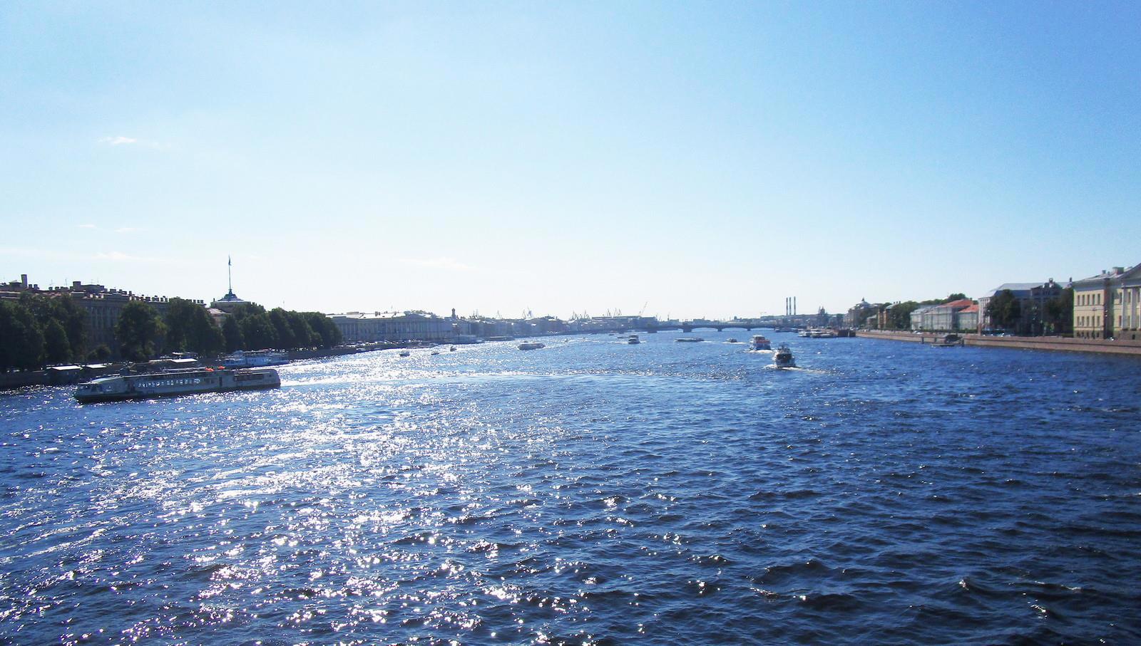 А это уже вид на Неву с Дворцового моста. Все кипит от разных судов: