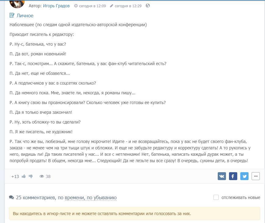 Автор: Кирилл ШараповИ так не так давно Игорь Градов создал пост "Наболевшее". Вот с таким текстом.