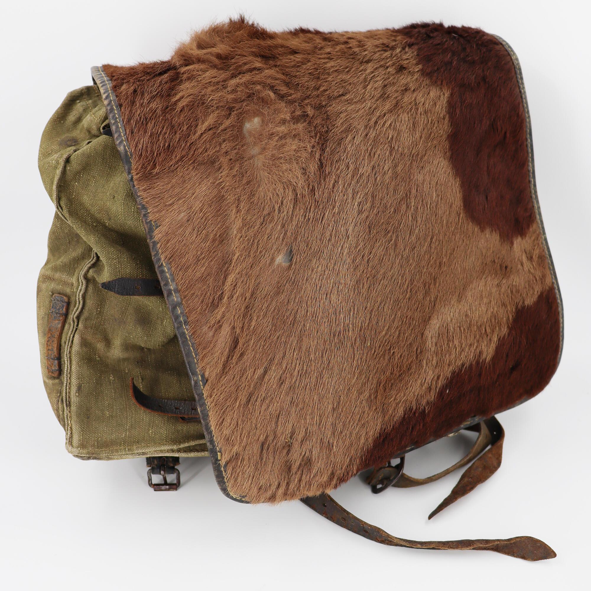 Ранец немецкий с крышкой из телячьей шкуры. очень быстро оказалось, что хорош только в мирное время для казарменной жизни. Уже в 42 году практически не использовали.