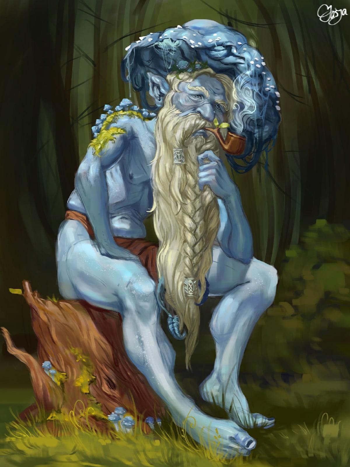 Я его довольно быстро тогда накалякала, где-то за часа 3, и уже тогда почувствовала, что этот члдж влияет на меня благополучно. И мало того, я его нарисовала почти без рефов и при этом довольна анатомией (Хотя я дедов особо не рисовала), рефы были только на грибы. А гриб этот называется строфария сине-зелёная