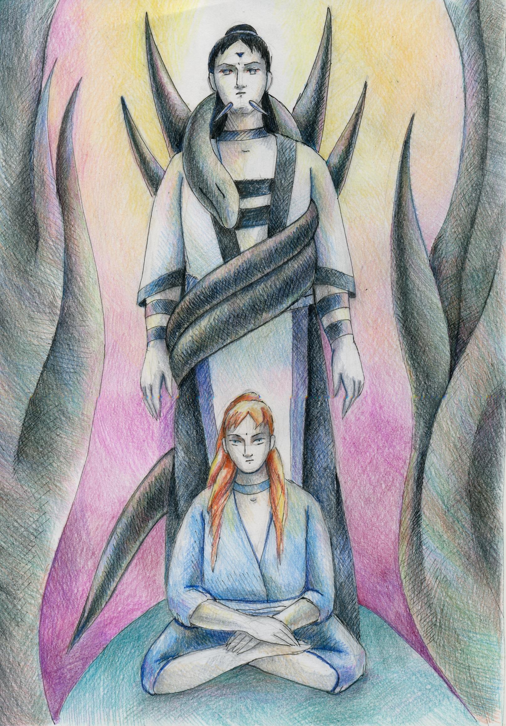Эньши: Потому что постоянно ловлю в мыслях странные вайбы и воспоминания, принадлежащие не мне? А вообще я рада, что смогу исполнить роль твоего проводника в недрах и тем более среди нэн! Детство и юность, проведённые на поверхности, не дали мне проникнуться порядками и традициями нэн. Я помню, что такое свобода поверхности и никогда не смогу расстаться с ней.
