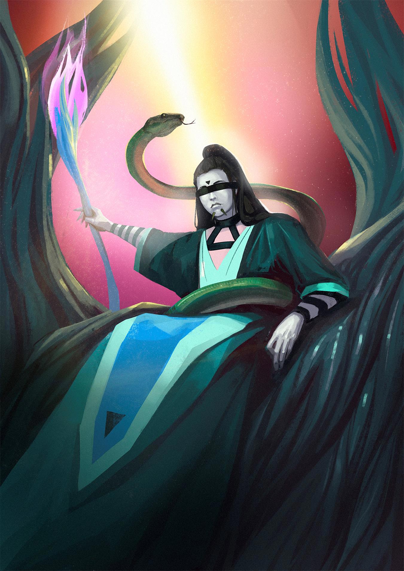 Госпожа Аминада: Это - волосы твердынного владыки Ашвы? Взгляни, как они великолепны! *змеи за ней распрямляются, образуя змеиный ореол* В них находится пыль твердынного владыки, и благодаря этому я как могу слышать его помыслы, так и направлять их совместно с другими хтониями, тоже облачёнными в пылевых змеев. Так мы правим самой твердыней. А кроме того, змеи помогают избавляться от разных докучливых болтунов.
