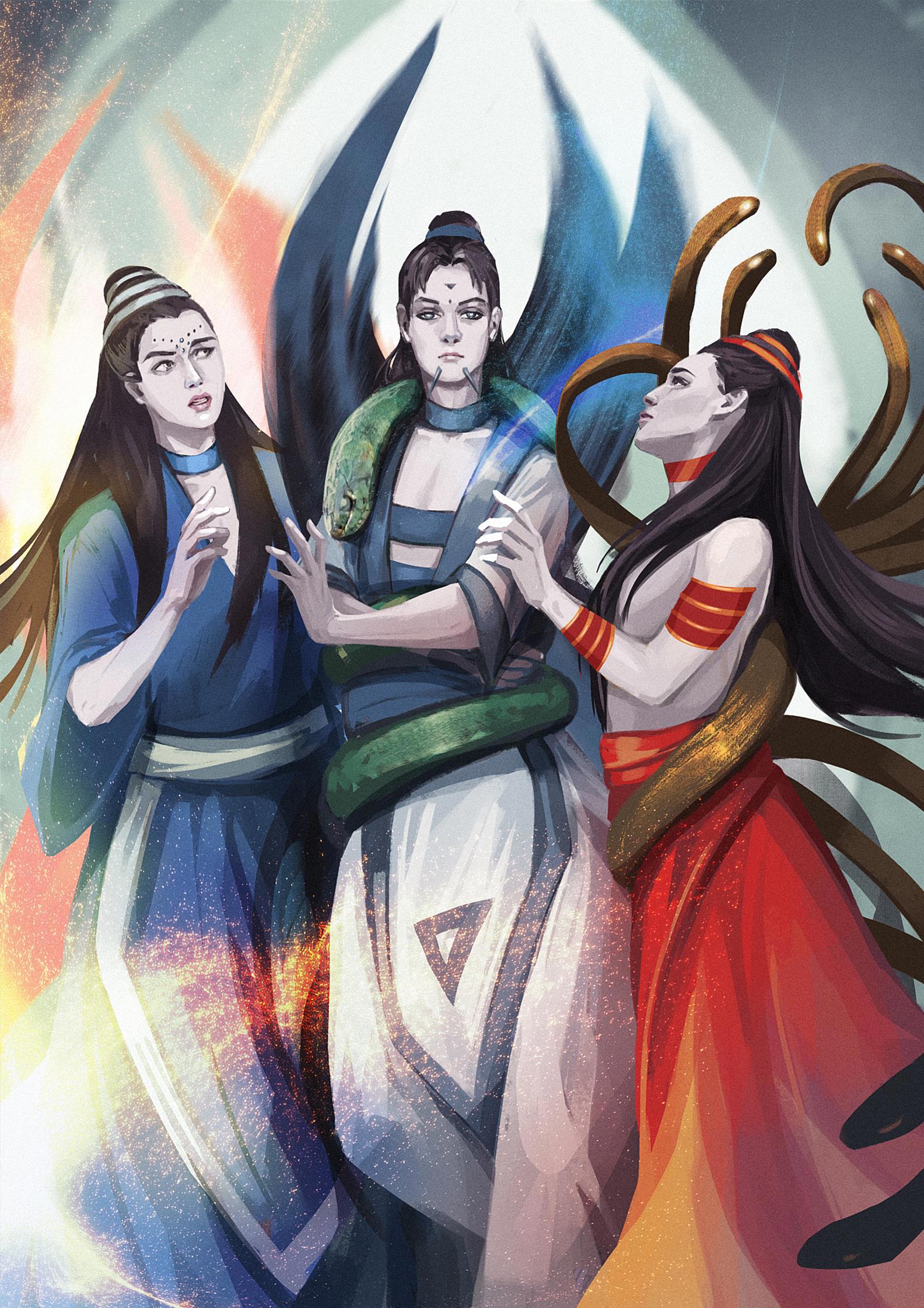 Нэны. Слева направо - госпожа Аминда, госпожа Доната, Унадини Фекдис, нэна-горнячка