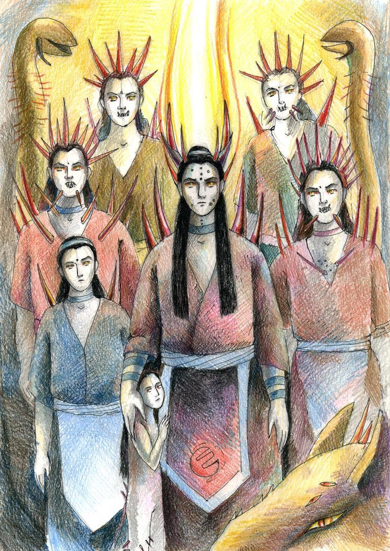 Госпожа Аминда: Катами мы называем отдельные районы недр, вмещающие в себя города и поселения. В отличие от поверхностных районов, они, каты - образования объемные. Обычно в одном кате живёт должное число хтоний и нэн-горнячек, но одна хтония и её семейство являются доминирующим и зовётся "властвующим семейством". Как раз таково моё семейство. Как главная хтония я знаю обо всех планах на творение у других нэн. И в моей власти как разрешить им творение, так и запретить, если я считаю, что сейчас не время.