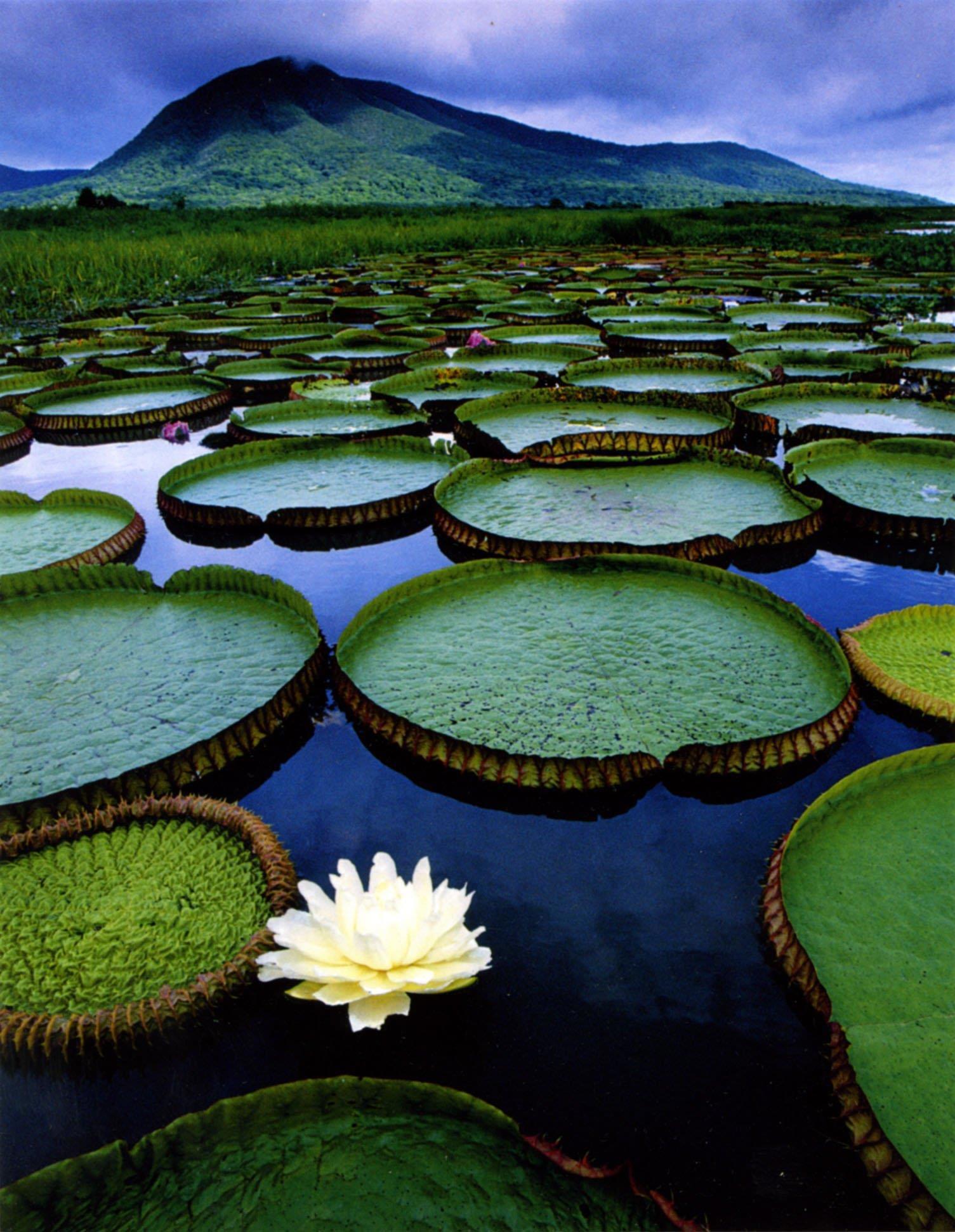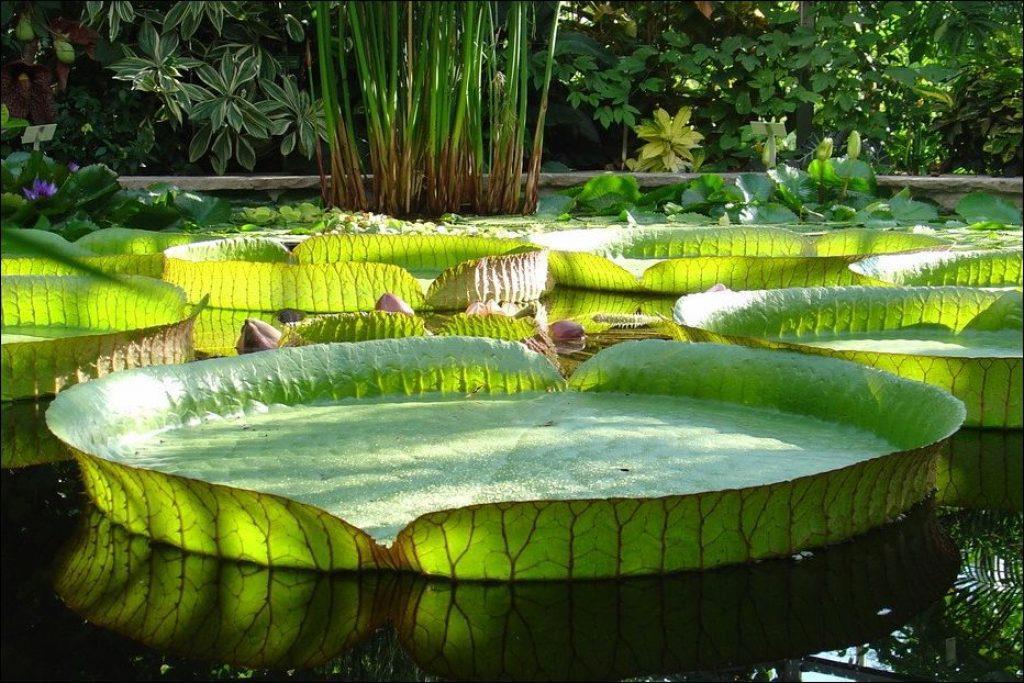 Растение, впервые обнаруженное почти 200 лет назад в бассейне реки Амазонки, поражает размером своих листьев, плавающих на поверхности воды.