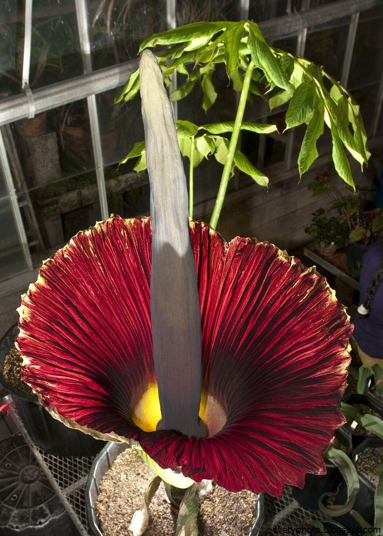 Клубень растения достигает 50 кг, а его соцветие является крупнейшим в мире и может иметь 2,5 м в высоту и 1,5 м в ширину.