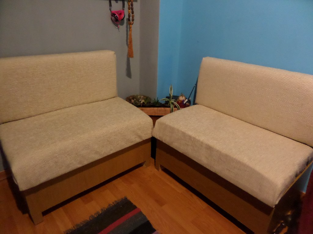 Ну, ладно, а теперь немножко болталка. Я ж обещала показать, что там мой мастеровой муж намастерил из старенького дивана и как подмял под себя комнатку сына. Всякие вещички со всего дома стаскивает. Обустраивается еще. Каждый день новые идеи выдвигает, ящичек для цветочков сколотил. Кактусики, то да сё. Обункеривается. Как закончит, так мы его и видели. Вопщем, показую.