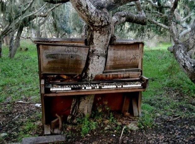 Дерево, проросшее, через пианино. Монтерей. Калифорния.