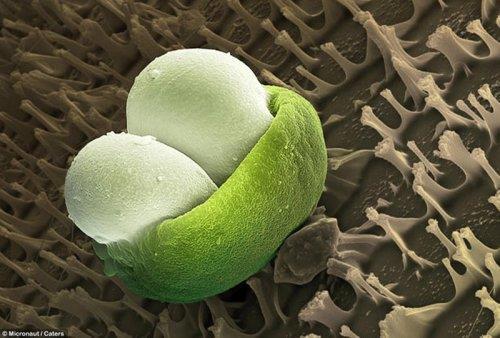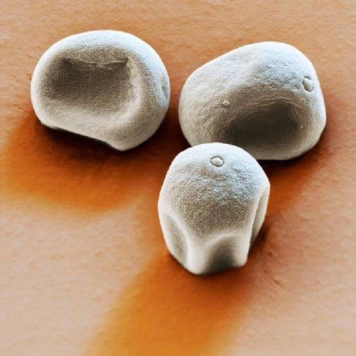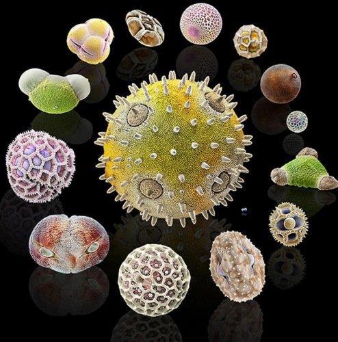 Увеличенные с помощью растрового электронного микроскопа частицы пыльцы ежи сборной. Это уже не макрофотография, и даже не просто "микро"... :)