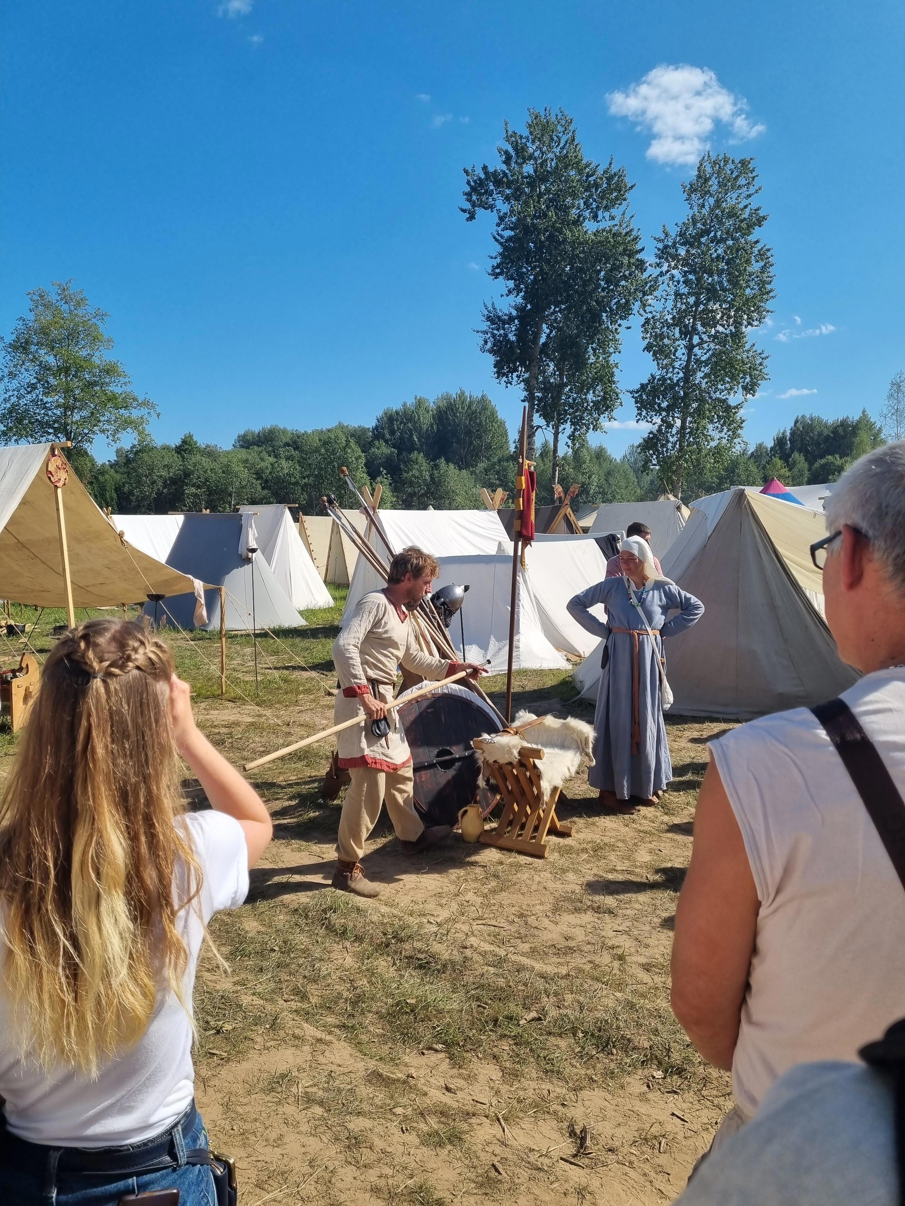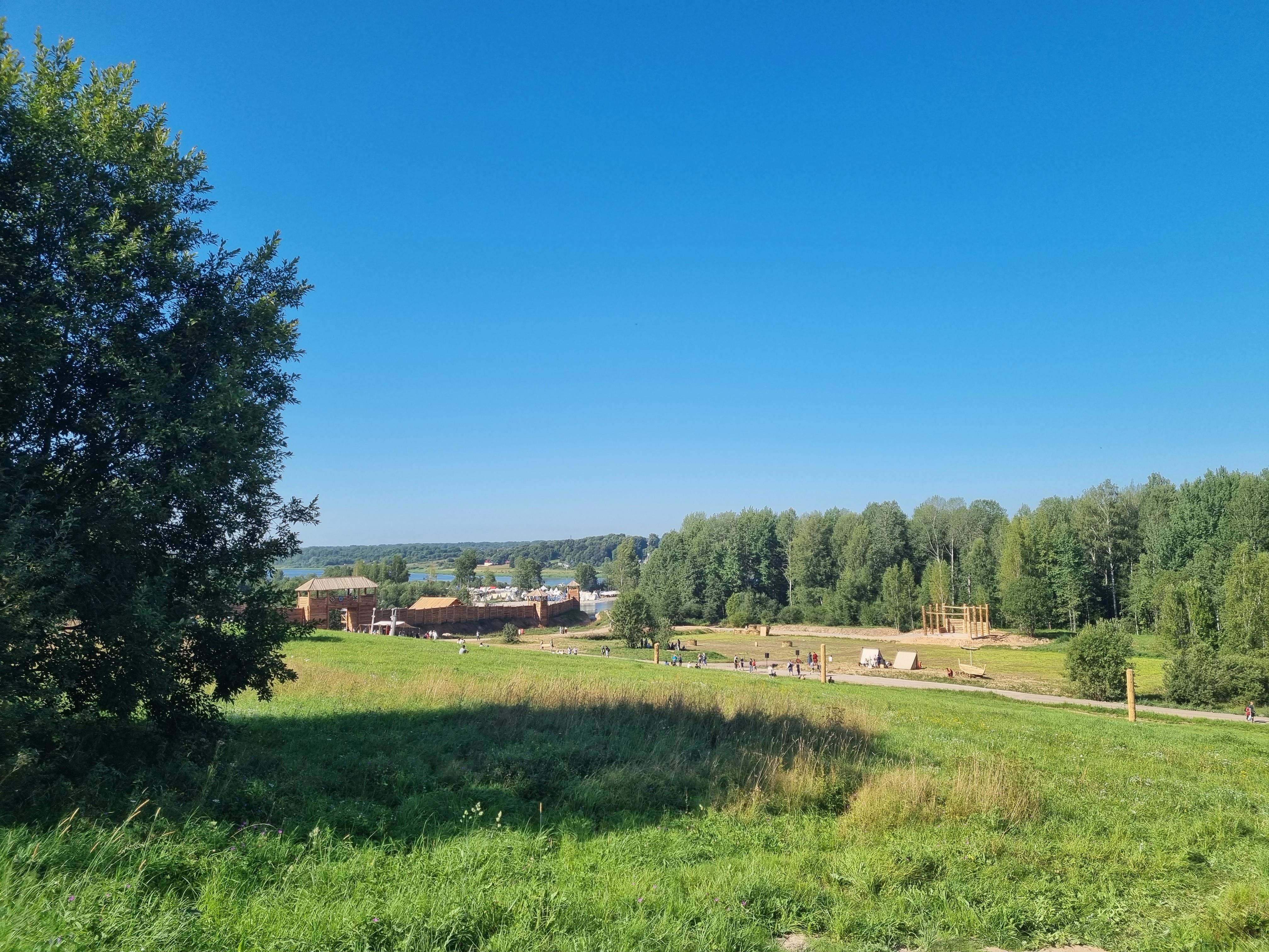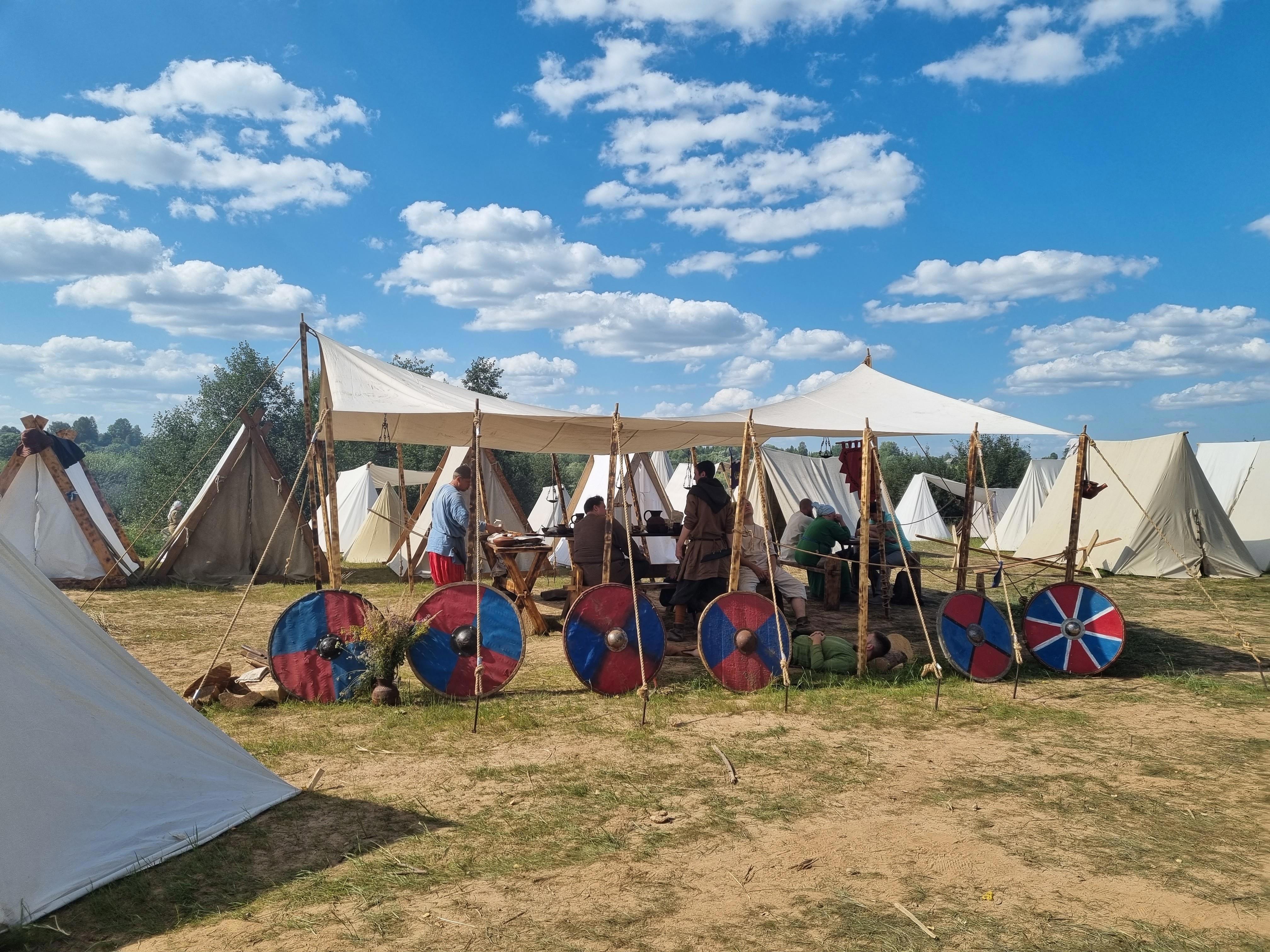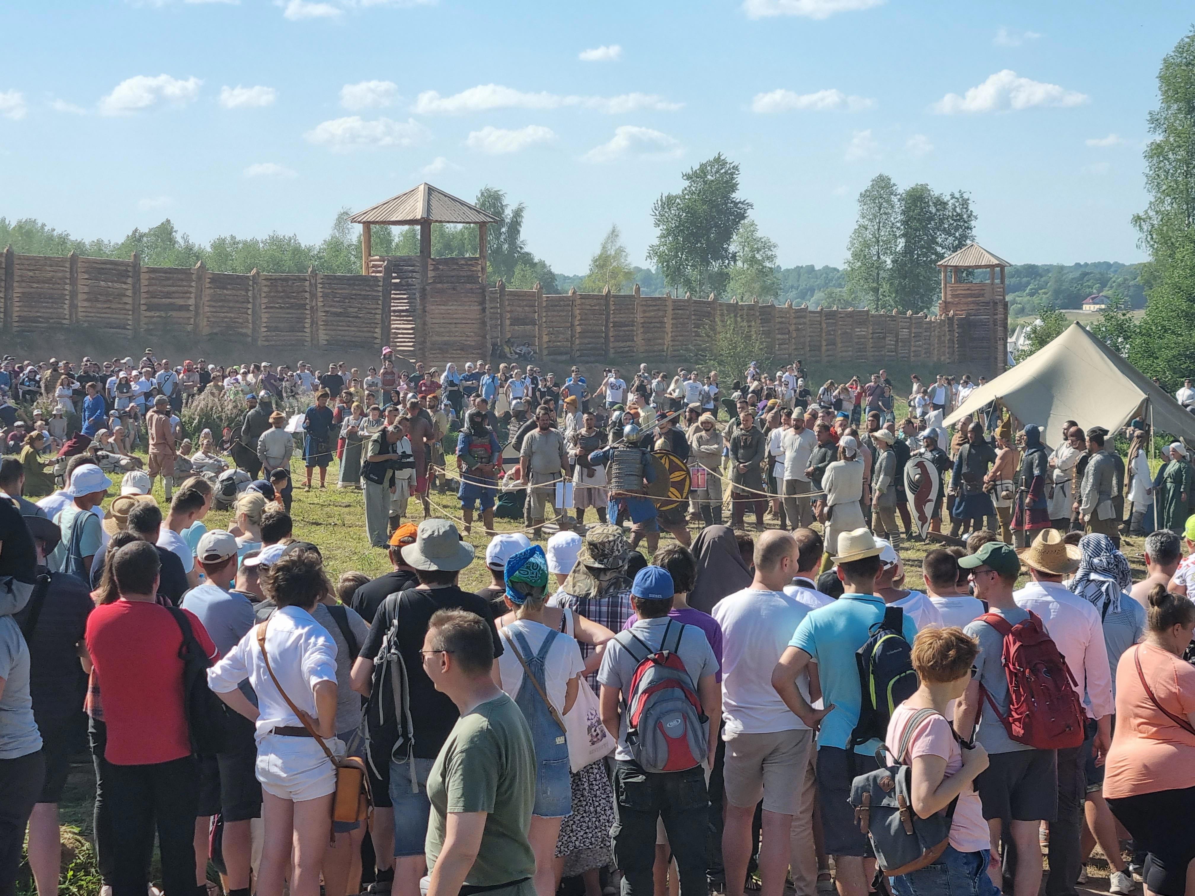 Вот вам, говорят, живописное место вдали от славного древнего города Великий Новгород на берегу реки Волхов. Вот вам деревянная огромная крепость, возведённая со знанием дела и любовью к истории. Вот вам целая армия средневековых пехотинцев, стоящих лагерем на территории крепости. Мастерклассы, лавки с сувенирами и конечно же - сражения больших масс народа стенка на стенку.
