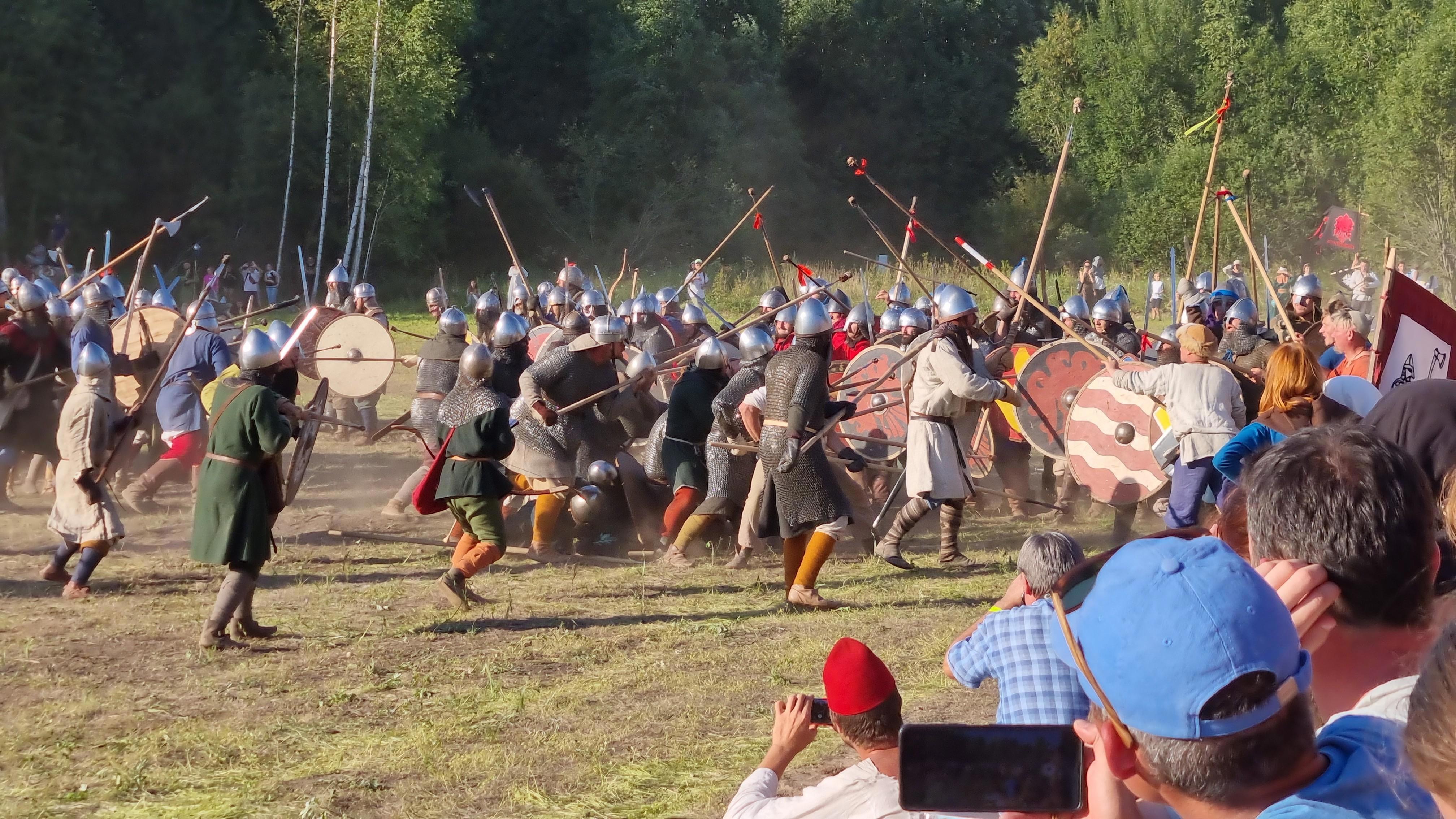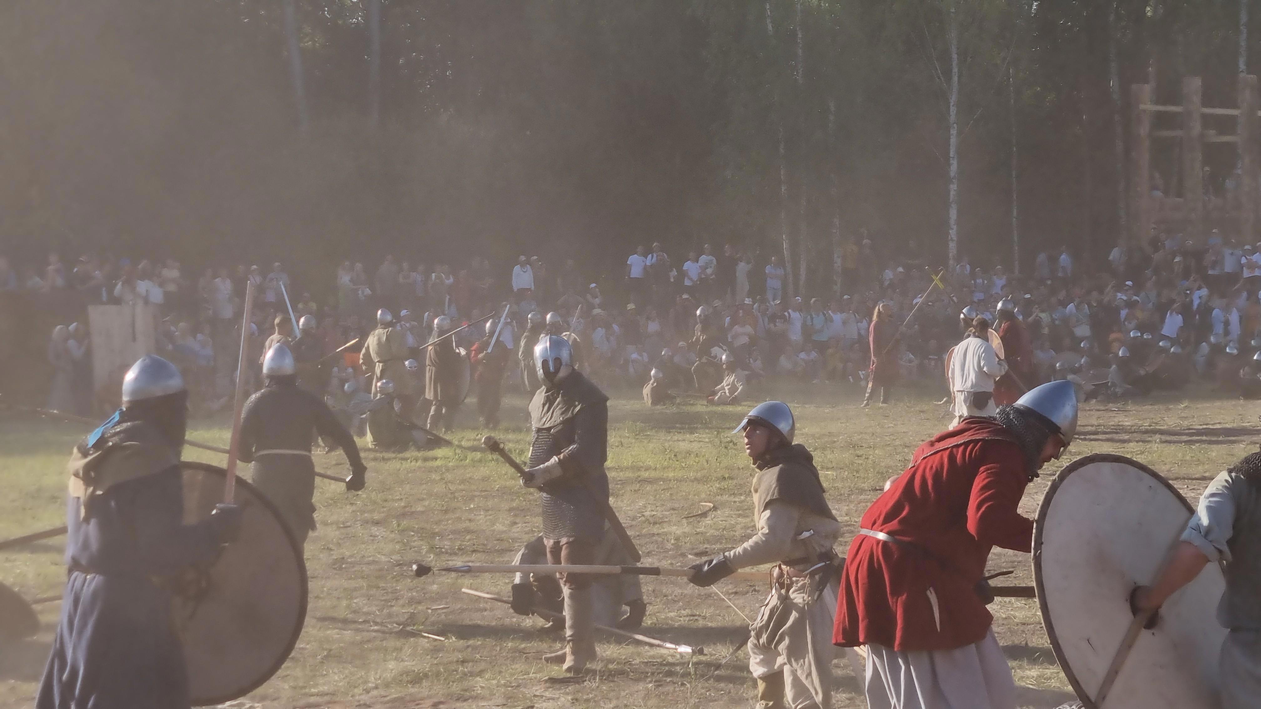 Масштабные битвы, где участвовало около полутысячи бойцов, были стремительны и яростны. Воины не скрывали эмоций и разговаривали по-военному лакончино и ярко. Случались конфликты - дружина Жука часто обращалась к судьям с просьбой лучше следить за регистрацией поражения бойцов противоборствующей команды, среди которой оказалось много "Маклаудов". Между скоротечными поединками, длящимися буквально пару минут, женщины и дети подносили бойцам воды. Жук Хитрый сменил бордовый наряд на кольчугу и шлем, а в варежки взял длинное копьё и возглавил атаку.