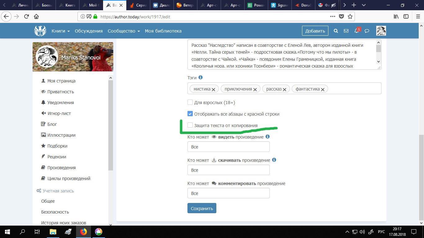Прошу на странице Настроек ваших произведений снять галочку с запрета копирования, дабы можно было цитировать