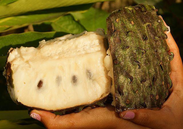 сметанное яблоко, она же саусеп (soursop), гуанабана (guanabana) и гравиола (graviola).