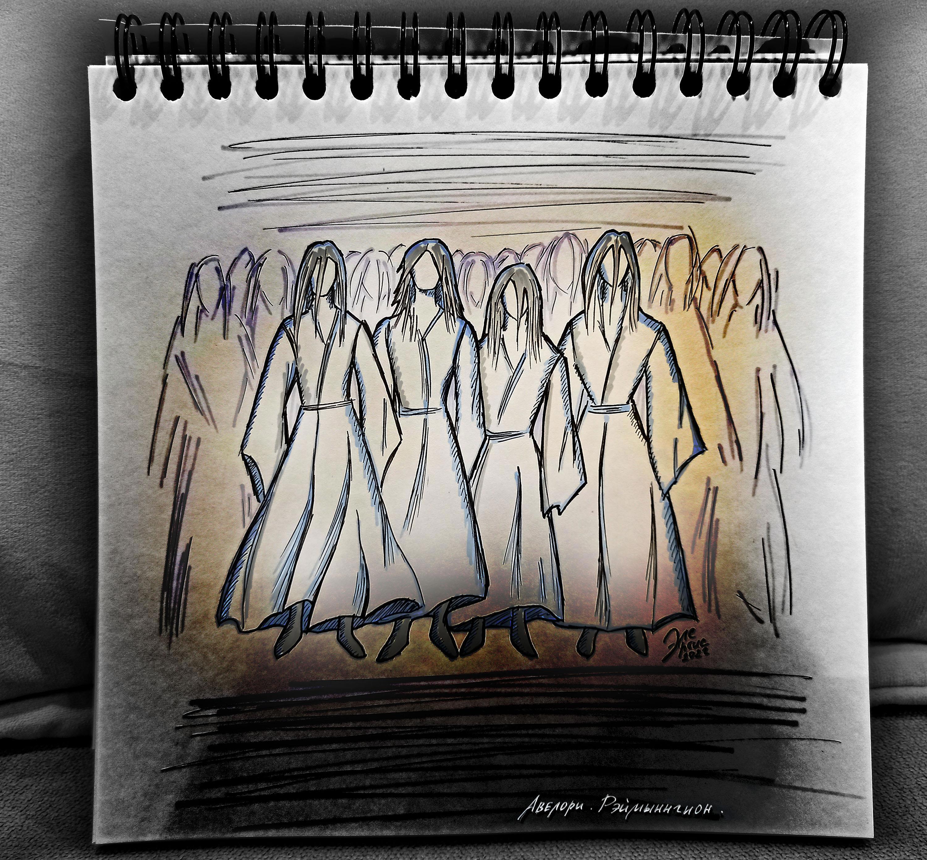 Их тела и длинные неестественно тяжелые волосы словно были сотканы из мутноватой воды. Полупрозрачные, с голубоватым оттенком кожи и уставшими безразличными лицами, авелори напоминали своим видом утопленников или обитателей заброшенного кладбища, решивших прогуляться в дождливый день. Обреченности их жутковатому облику, почти лишенному всяких признаков жизни, добавляли длинные бесформенные одежды белого оттенка.