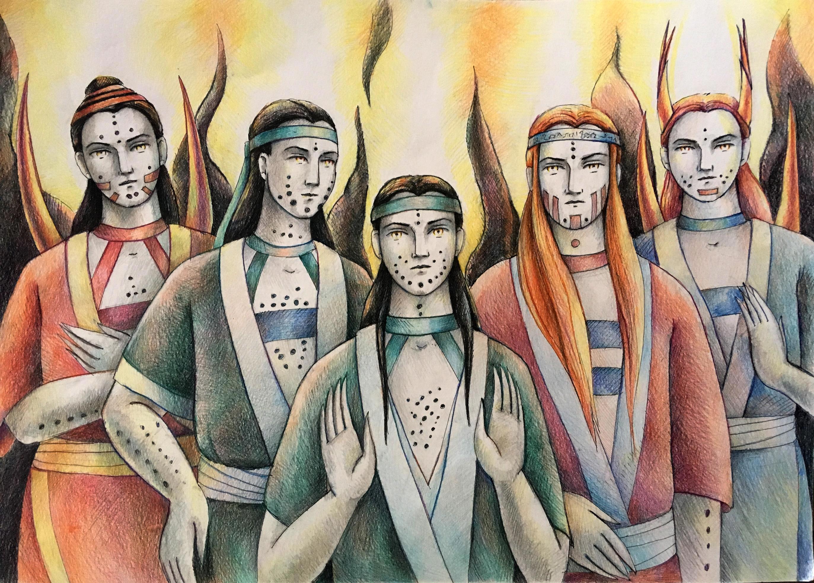 Ядущие. (слева направо) Баушти, Энида, Шии, Вардарба, Рандиша