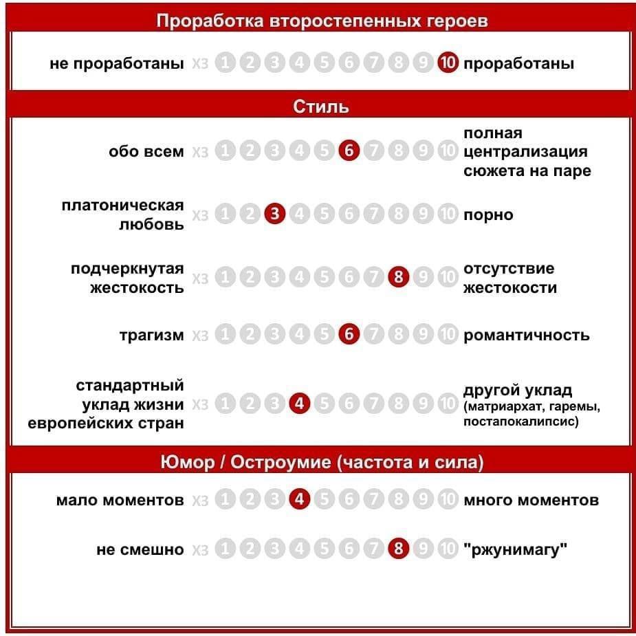 Так как героев вышло многовато... я не стала их оценивать в табличке. Зато интрига на всю книгу - вам обеспечена.