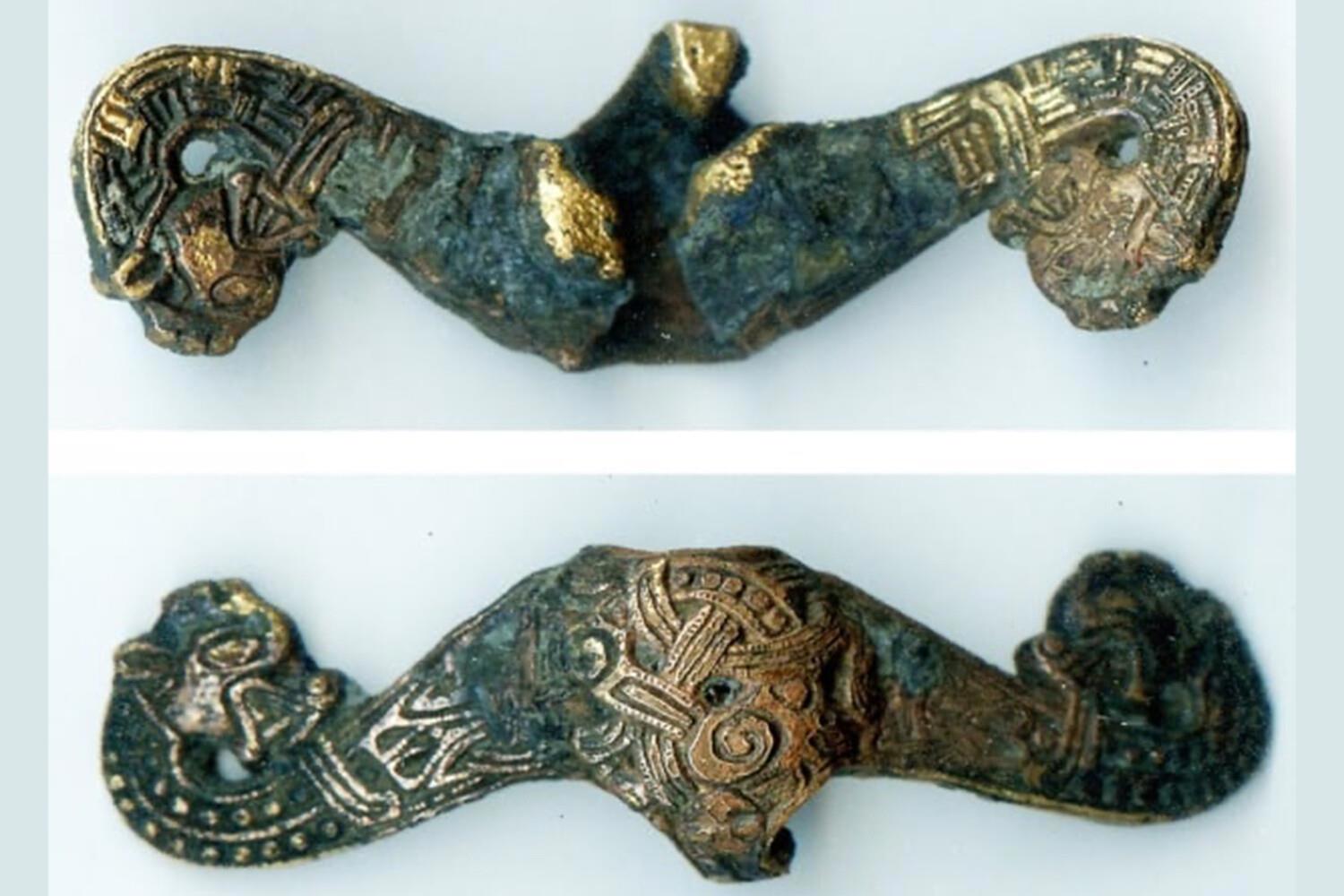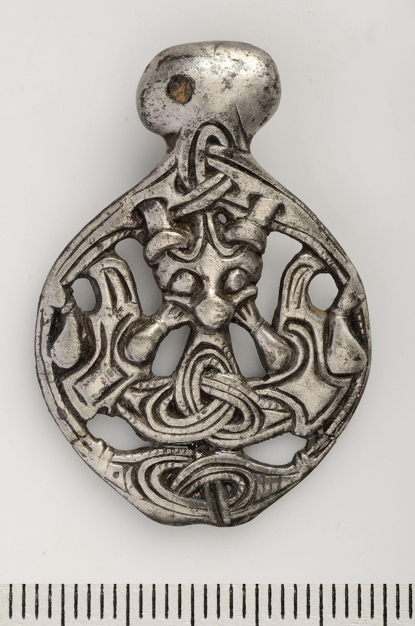 Этот артефакт археологи обнаружили в Троицком раскопе (Новгород Великий) в культурном слое X века. Предмет изготовлен в скандинавском стиле Борре.