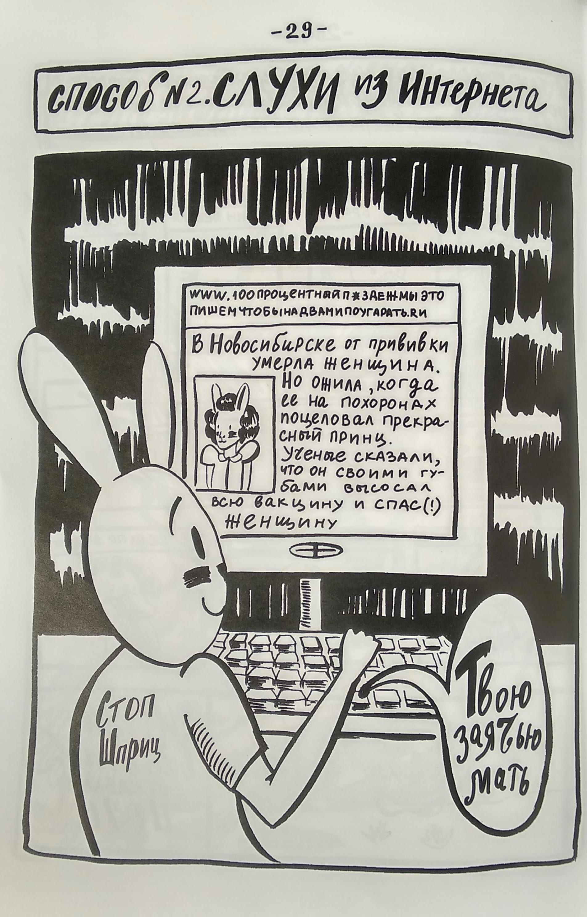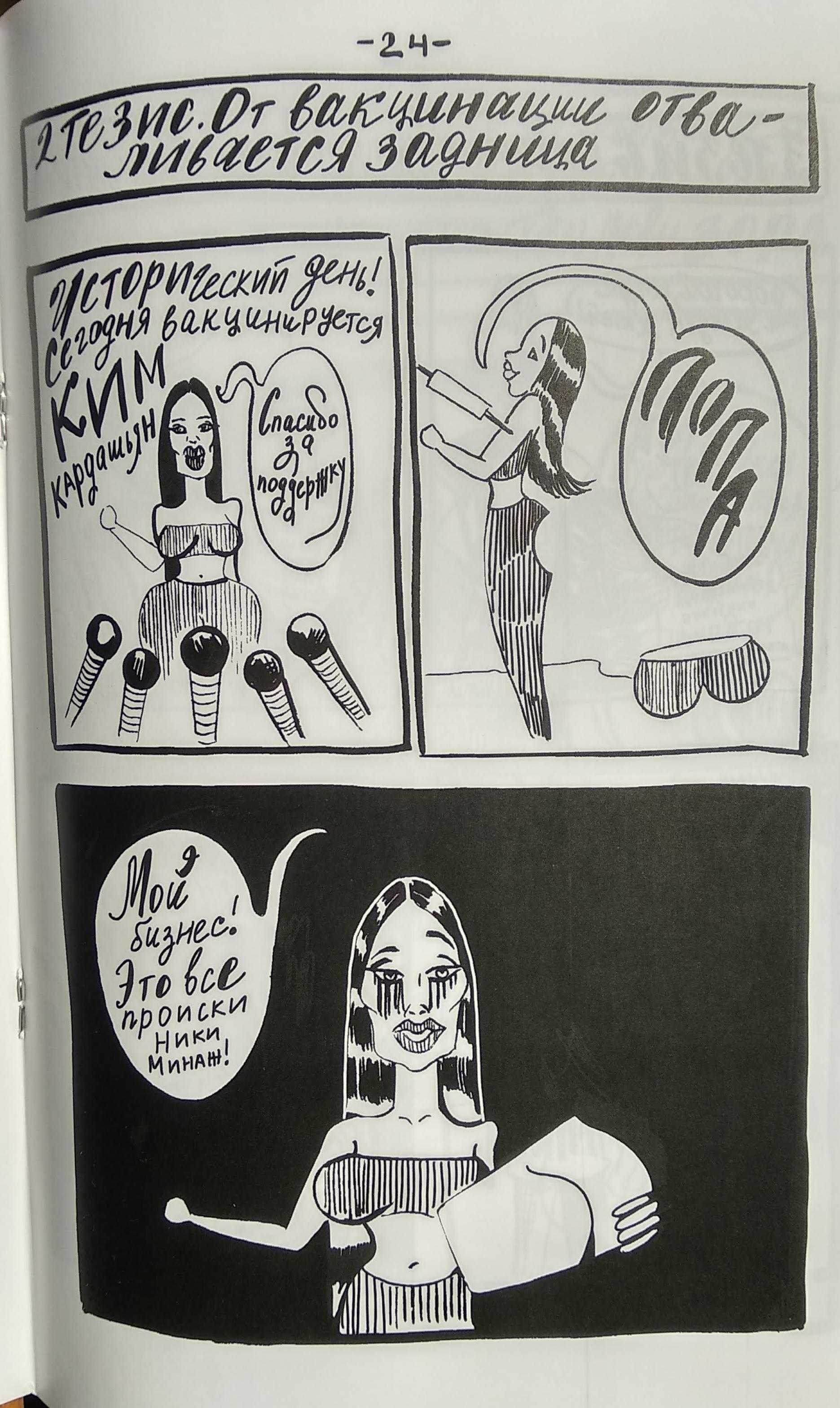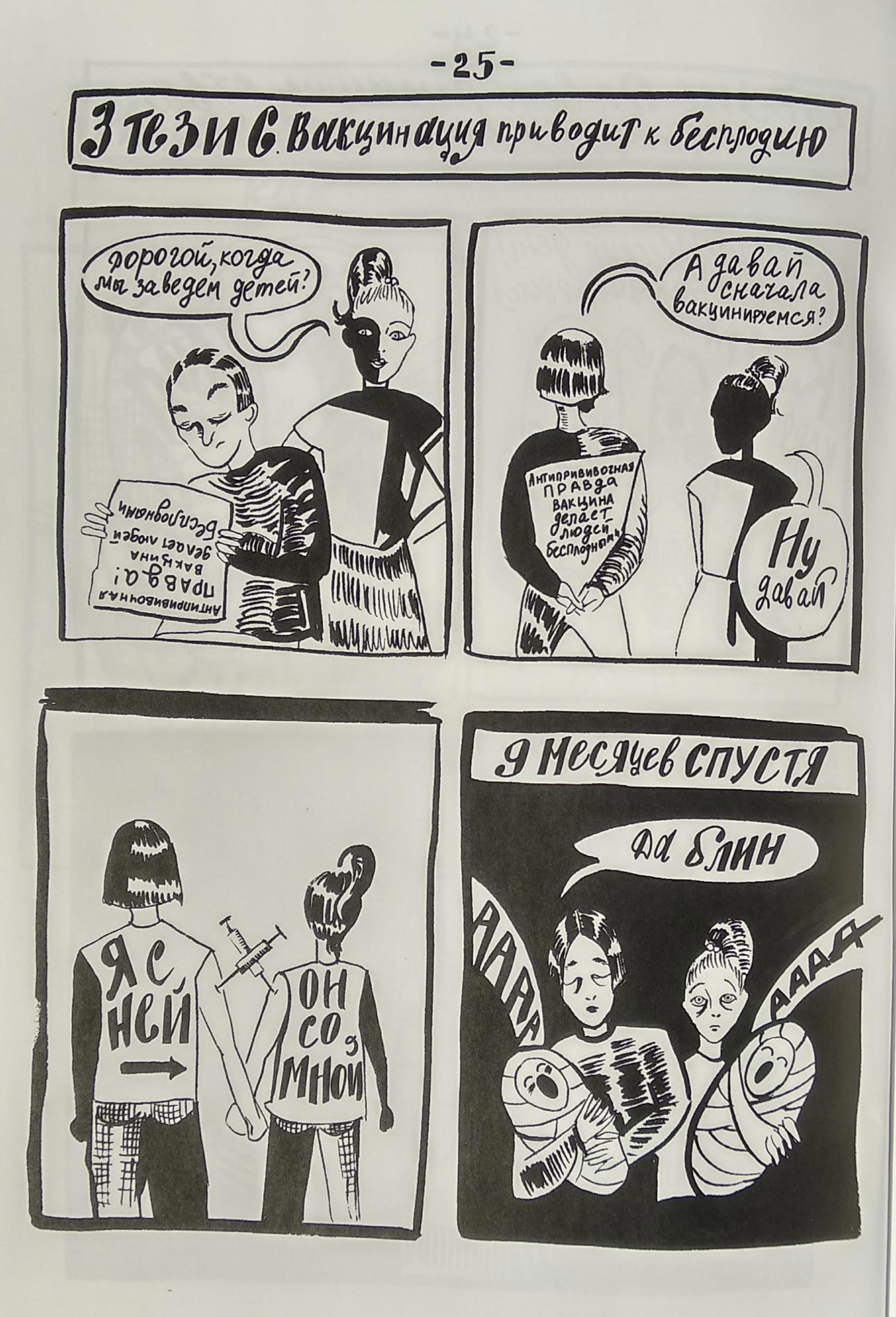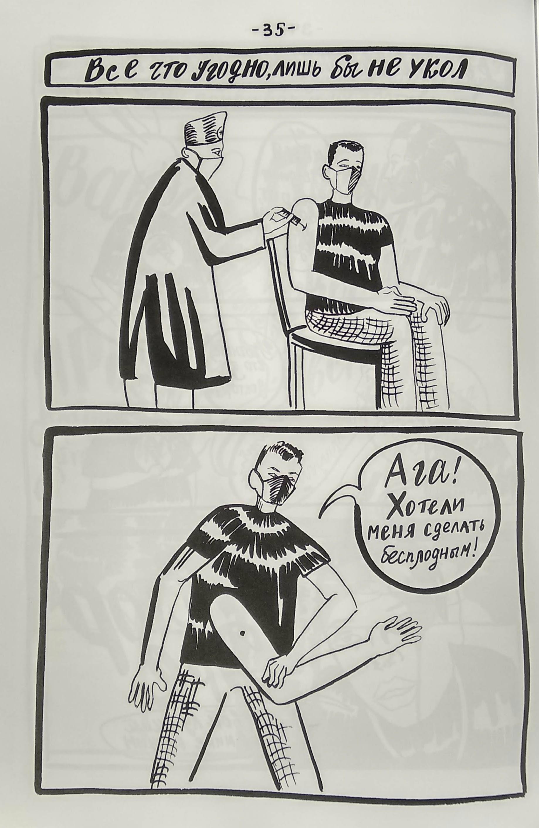 На первый взгляд, кажется, что это комикс - агитка делать прививки, но когда начинаешь внимательно его читать, выясняется, что это социальная сатира, в которой Илона смеется абсолютно над всеми, в том числе и над собой.