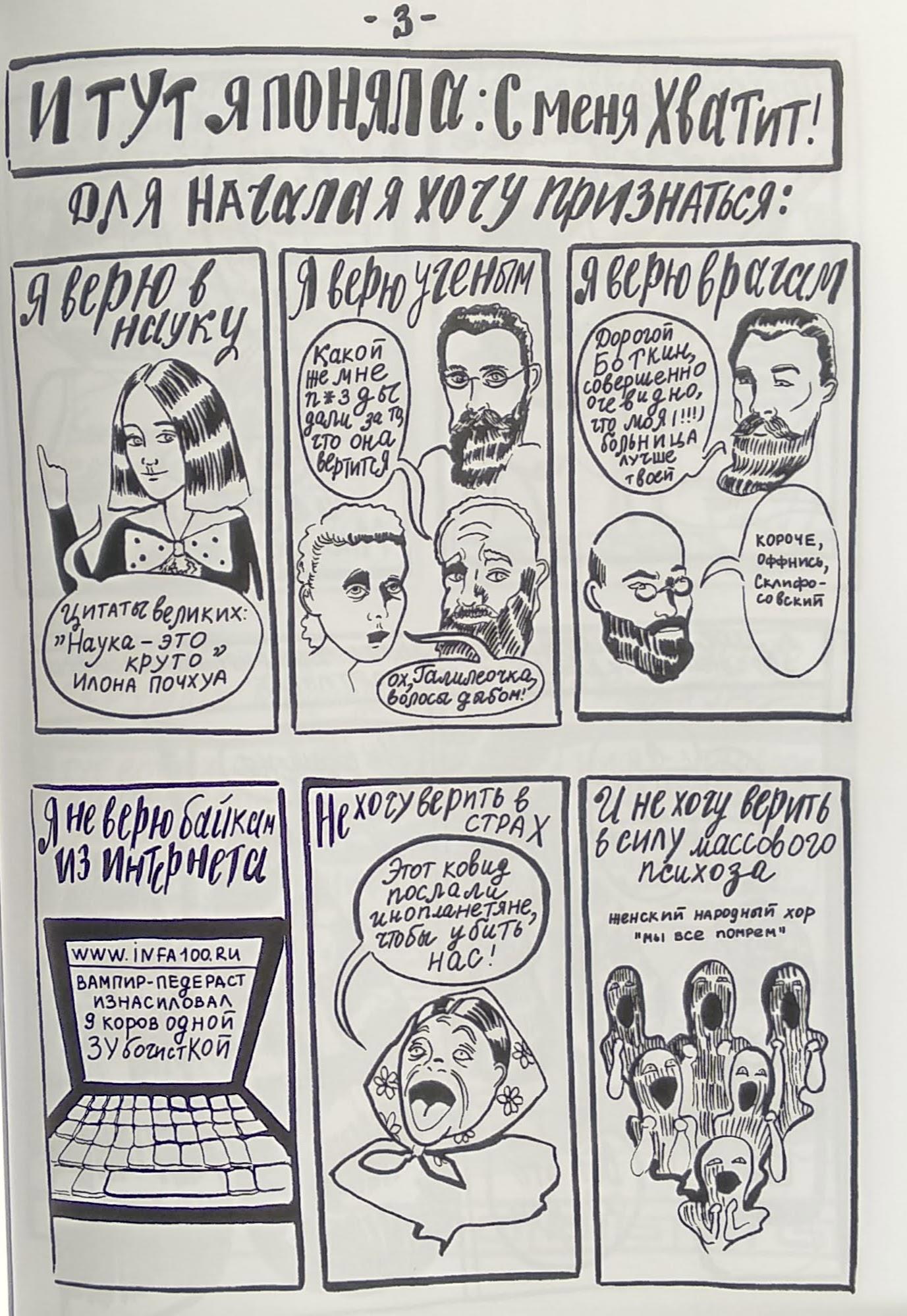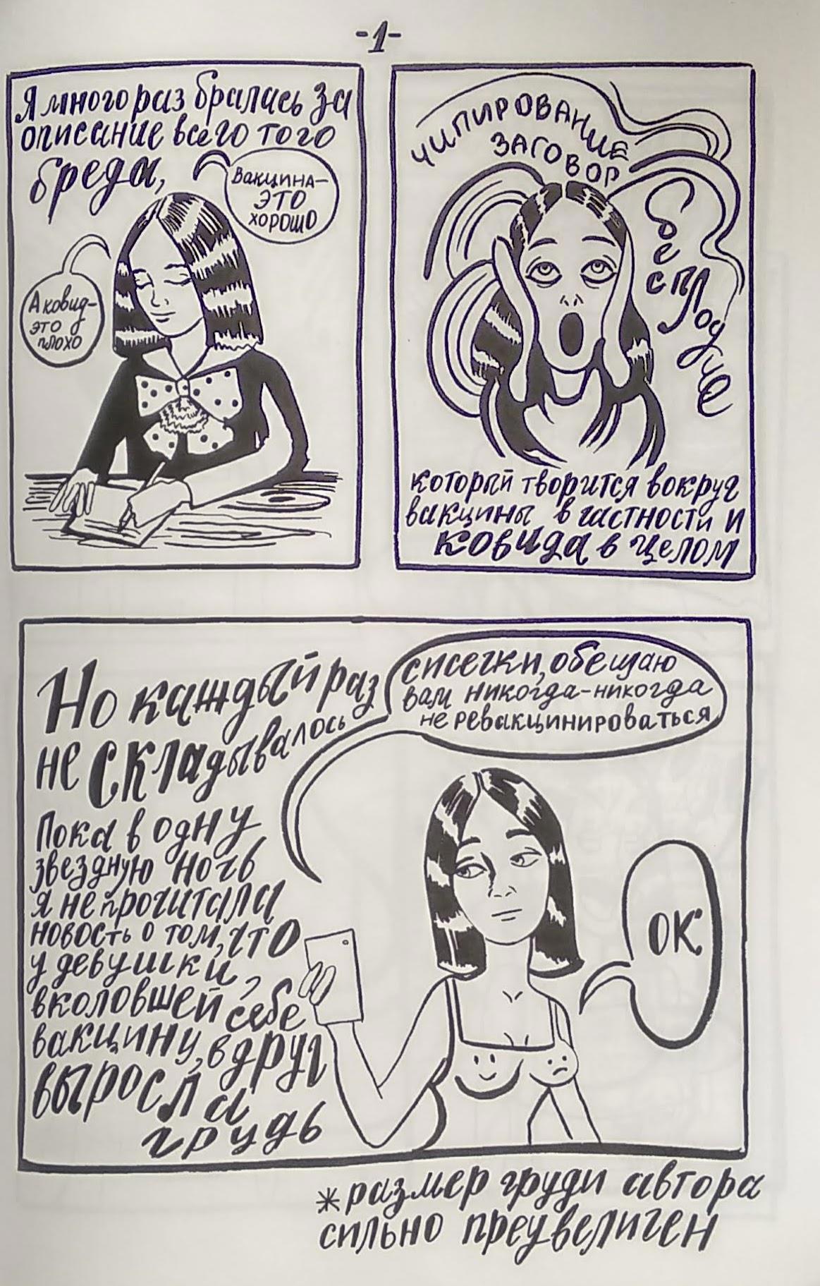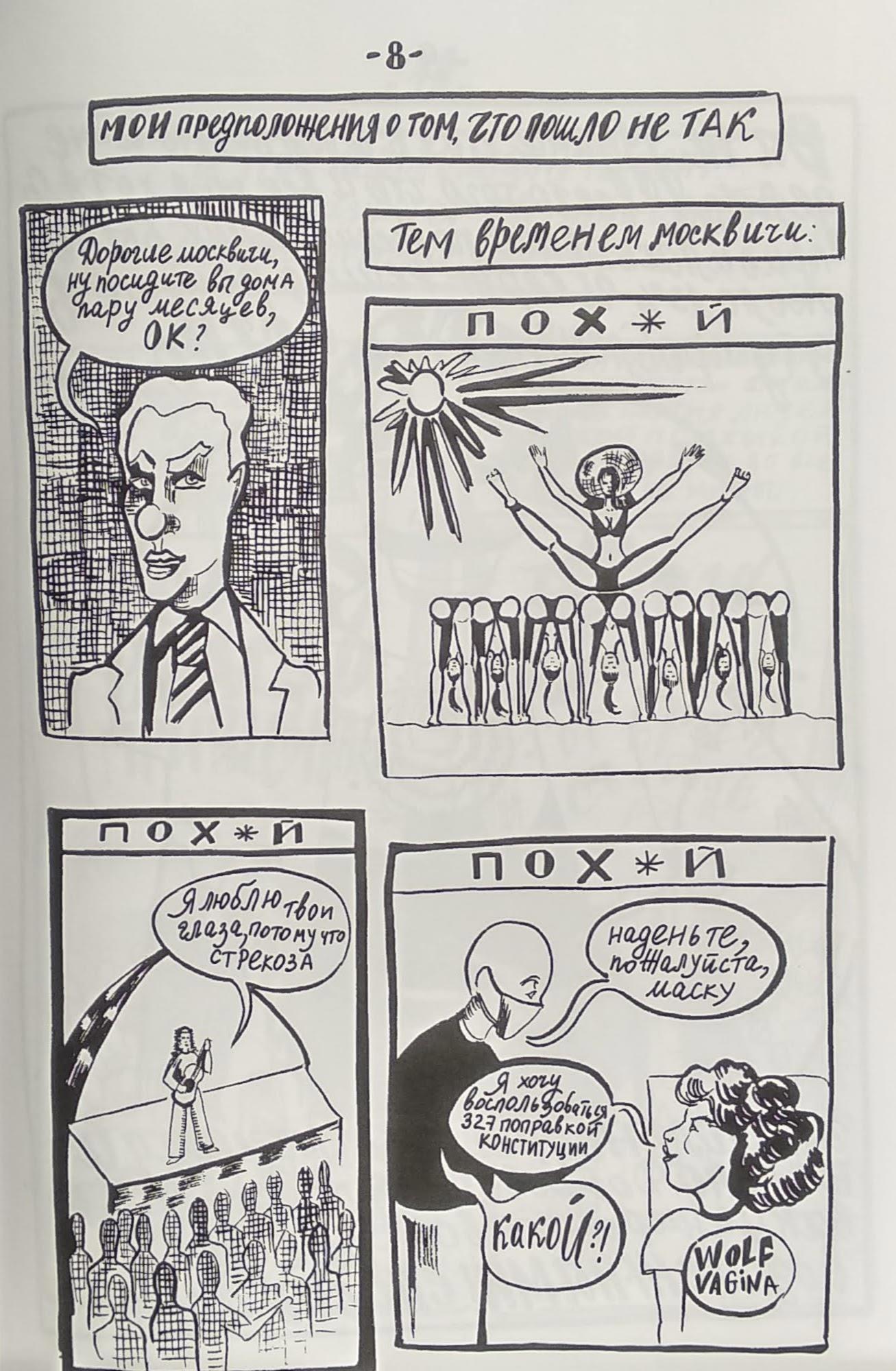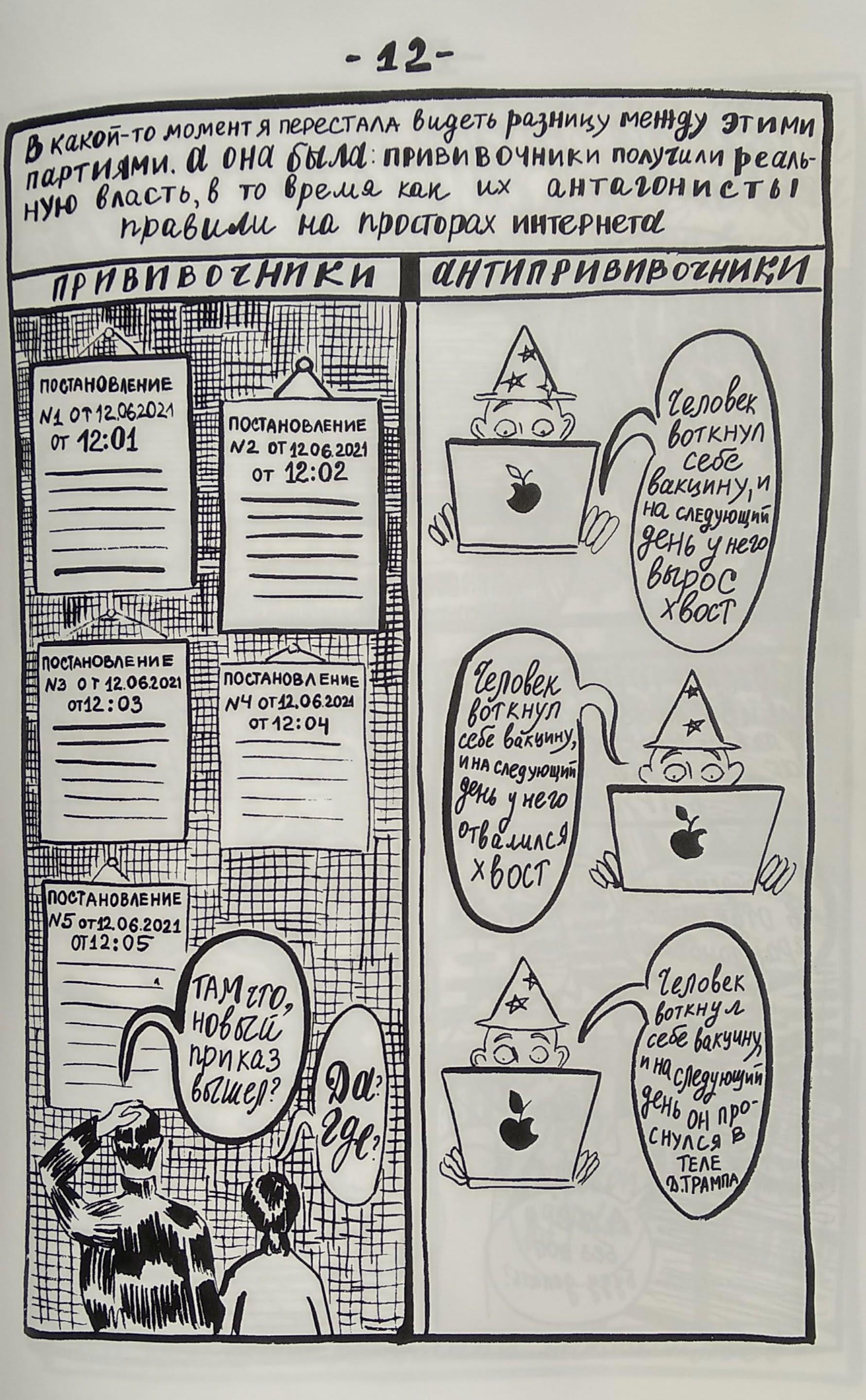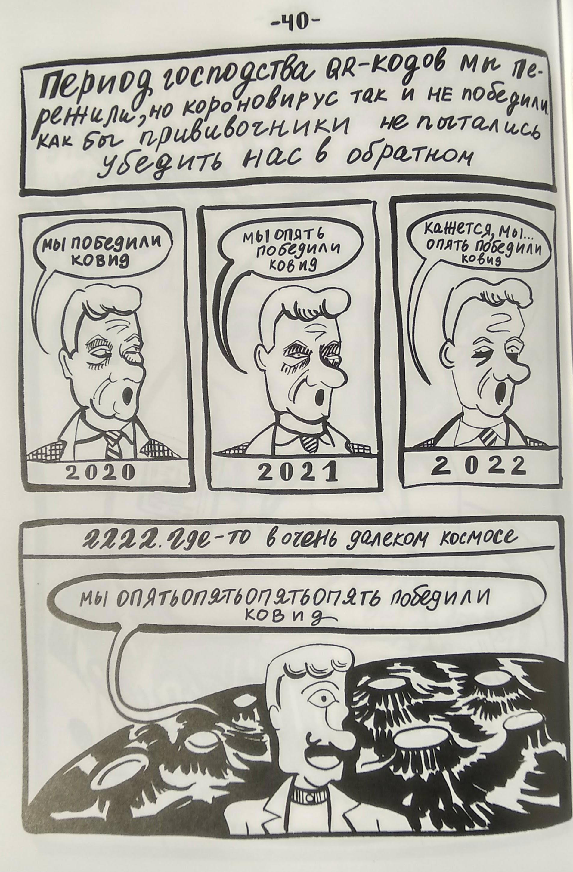 Насколько я понял из описания и предисловия, это дебютная работа начинающего комиксиста Илоны Почхуа, которая написала что-то типа исторического обзора о ковидной истерии лета 2021 года.