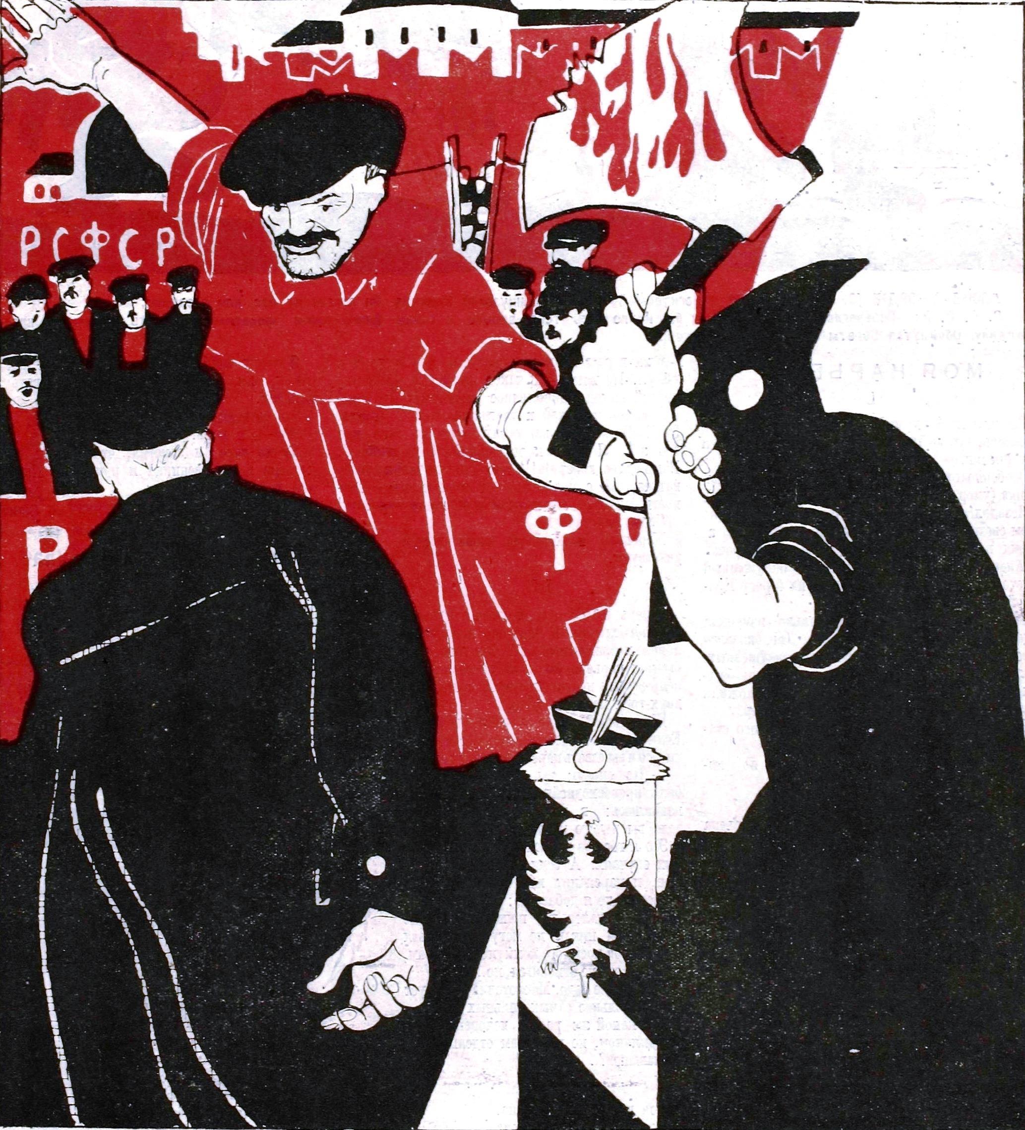Автор: Вадим Нестеров aka Сергей ВолчокКарикатура Дмитрия Моора "Польским коммунистам - привет!" увидела свет в 1923 году и была приурочена к прибытию в СССР выпущенного из тюрьмы польского коммуниста Томаша Яна Домбаля.