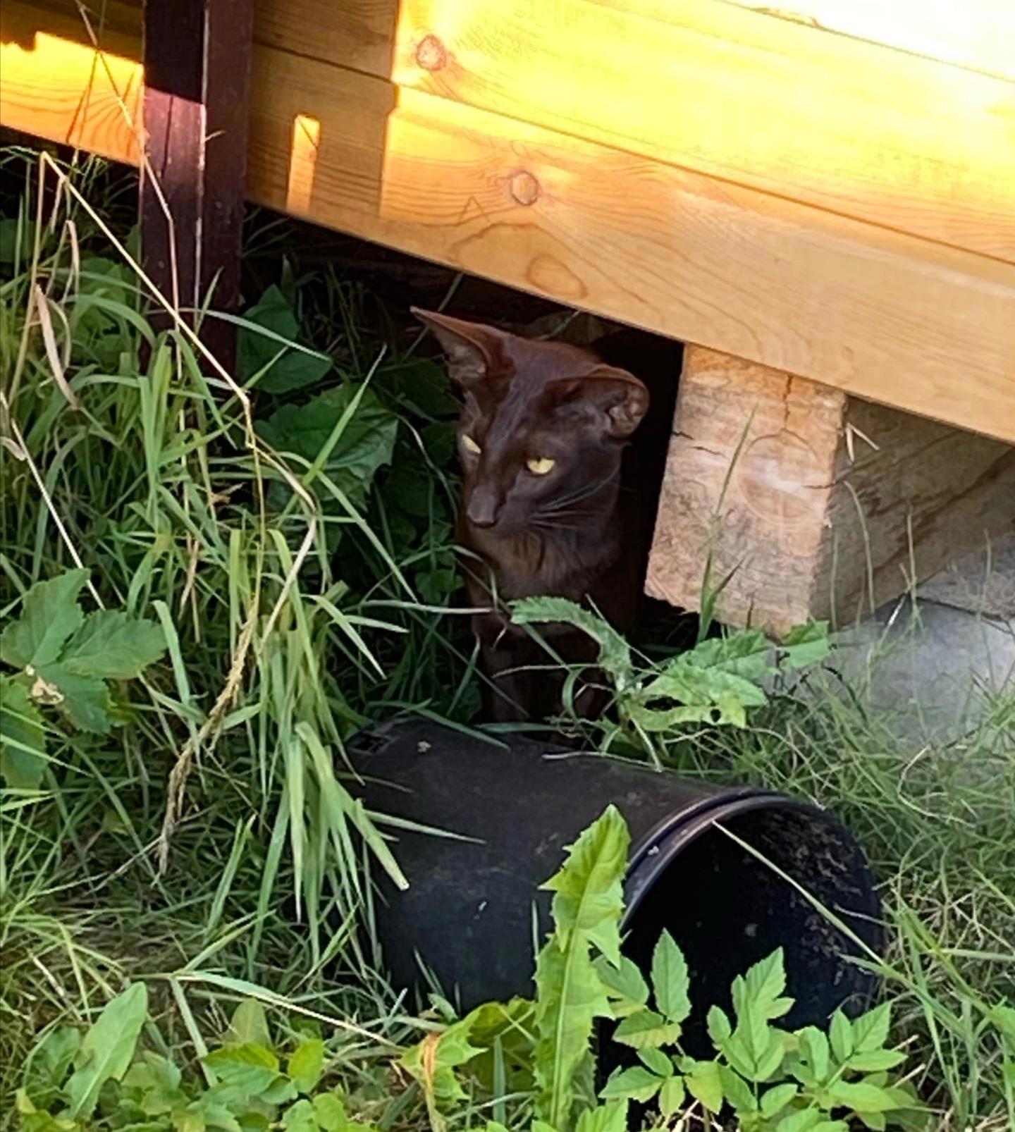Это Лёва, сосед с участка напротив. Идеальный кот для того, чтобы разместить его на обложке "Два дня перед каникулами", но увы - в статичной позе фотографироваться отказывается категорически :(