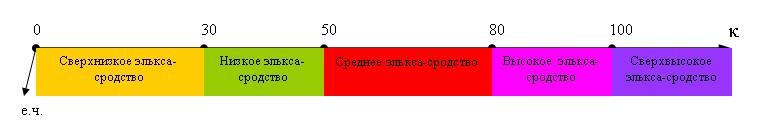 4. 50 < κ < 80: среднее элькса-сродство. Иногда за верхнюю границу данного интервала принимают 75 единиц.