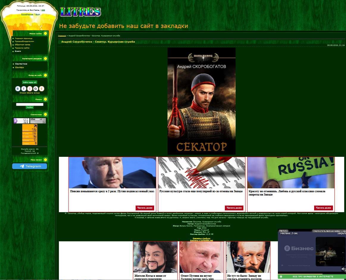 Автор: Андрей СкоробогатовСсылки не приведу, но, блин, насколько же это прекрасно! Прекрасно просто-таки всё: и обложка, хрен знает кем нарисованная с неизвестным мне персонажем, и дизайн сайта, и нечитаемый текст, и домен третьего уровня, и баннеры, и бланк письма-претензии по удалению, боже, как же это прекрасно: