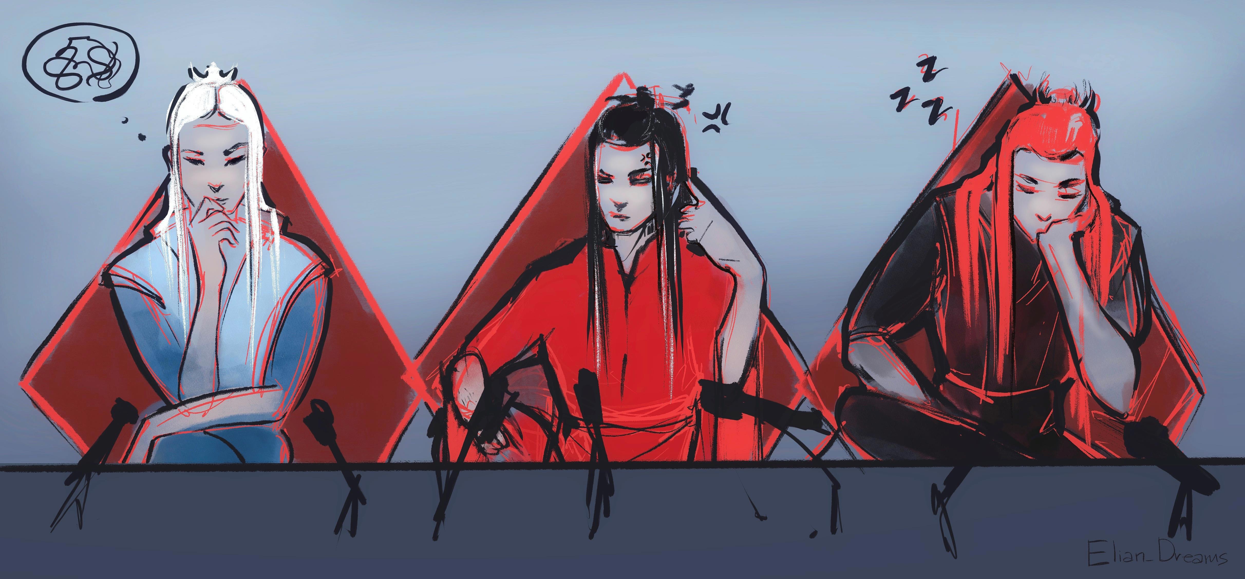 Первый ученик (хмурится): Глупости. Вкус Учителя изыскан, и он не пьёт ничего крепче лёгкого сливового вина. В отличие от тебя, грубое ты животное!