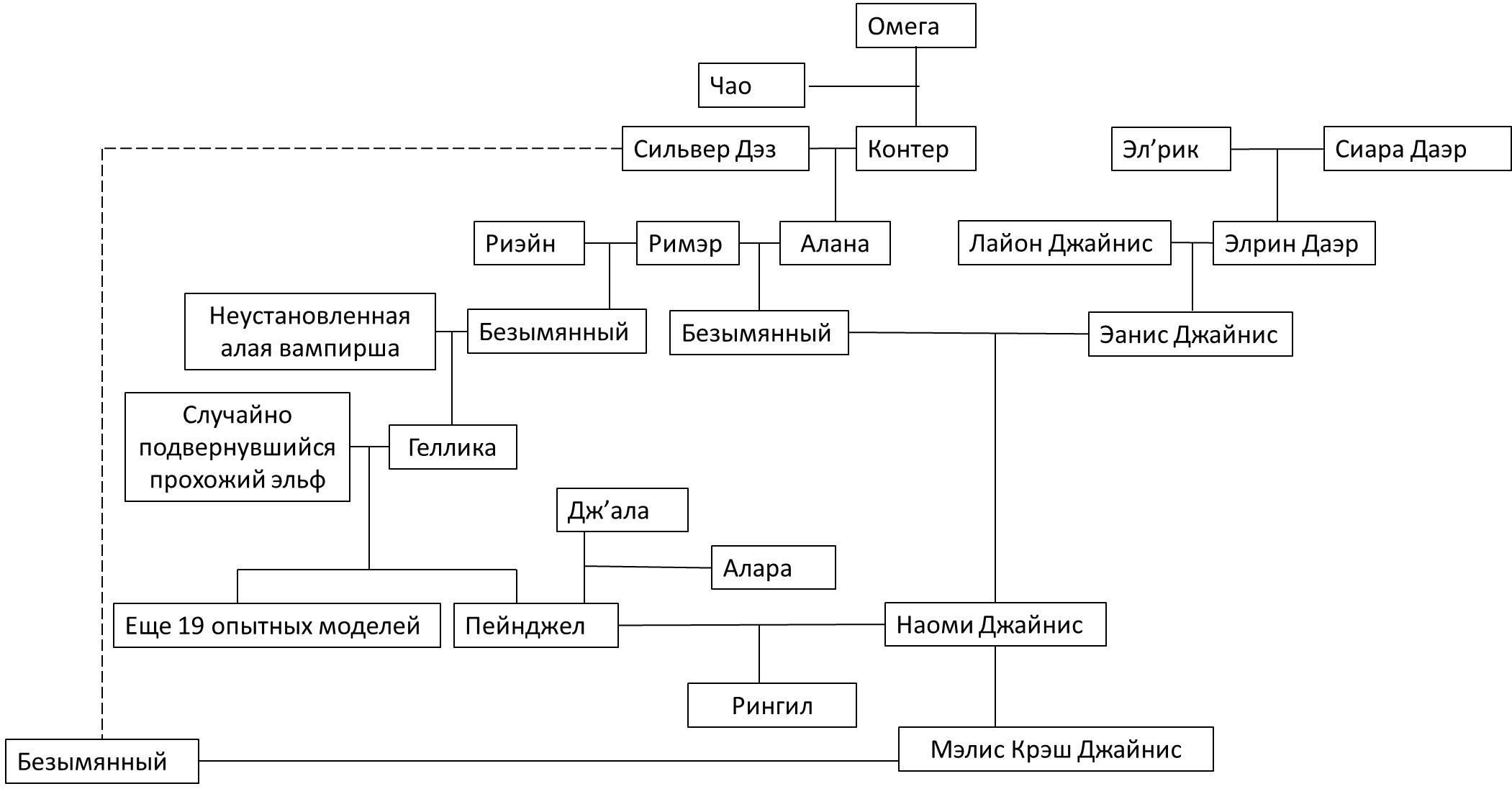 Вдруг захотелось нарисовать хотя бы фрагментарно генеалогическое древо одной героини. Получилось.