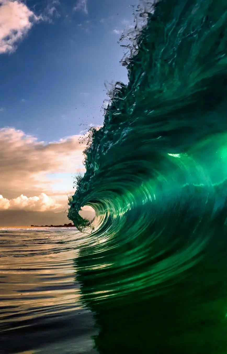 Натуральное Зеленое стекло. Прибойная волна. Остров Оаху. Гаваи.